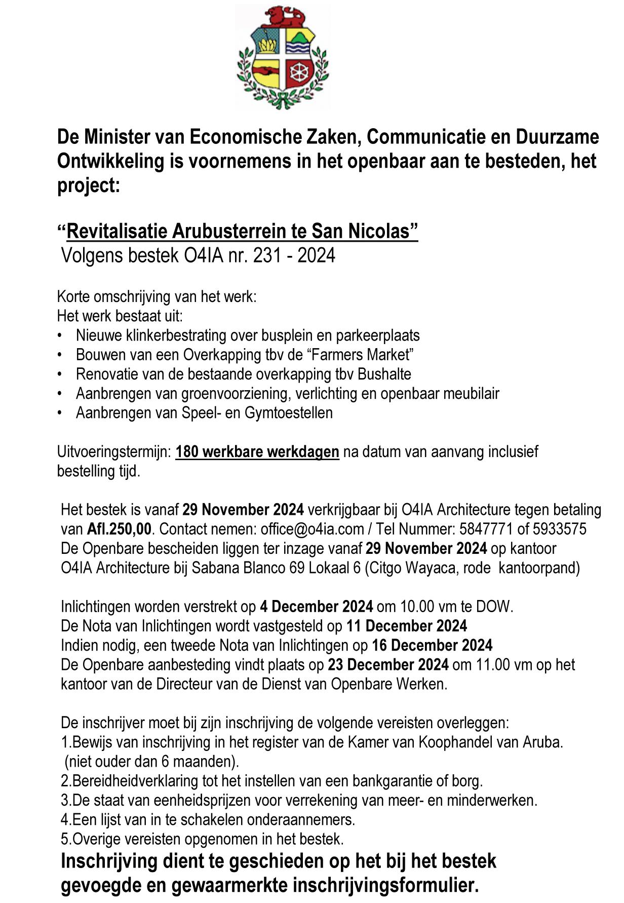 Gobierno a inverti 800mil florin den 8 ciclo di e proyecto y lo sigui haci esaki pa e añanan venidero