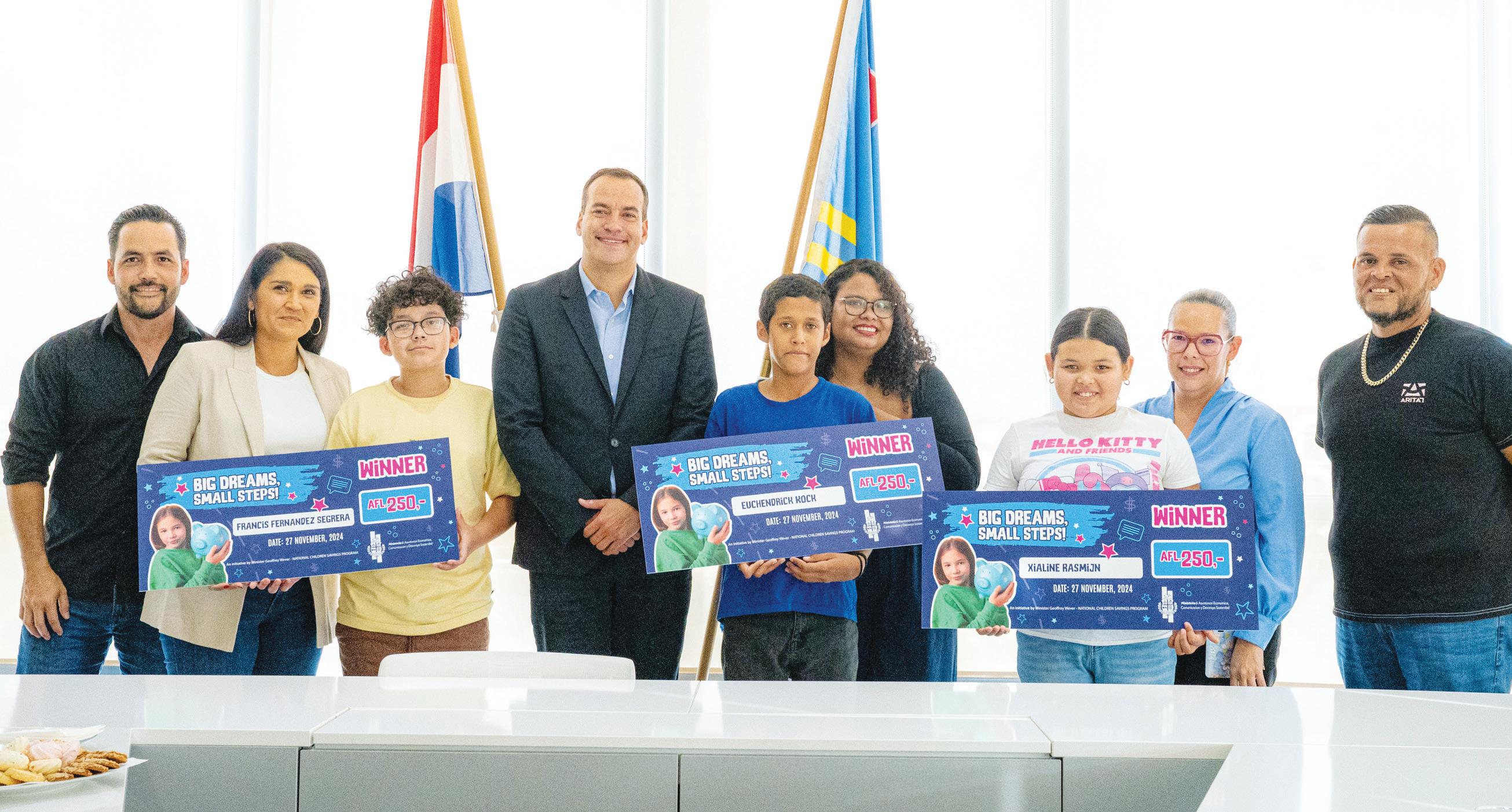 Geoffrey Wever a lansa riba 30 oktober 2024, e campaña di concientisacion over e importancia di spaar for di un edad jong ‘BIG DREAMS, Small Steps’ como parti di e ‘National Children Savings Program’ pa stimula inclusion financiero pa muchanan, riba diaranson 27 november 2024, Minister Geoffrey Wever a haci entrega di premio na e 3 ganadornan di e competencia.