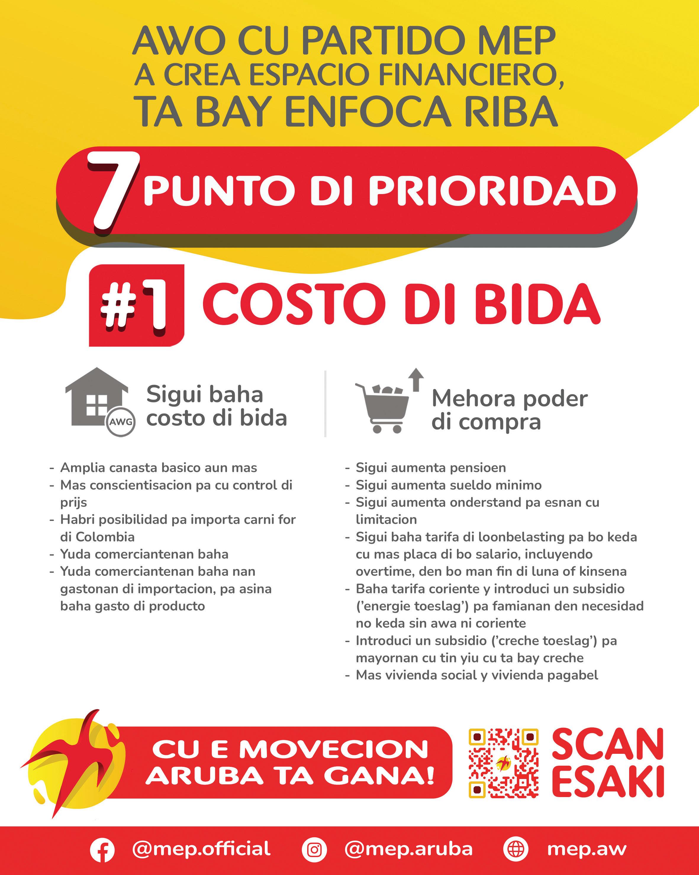 “Gabinete Wever-Croes a traha duro pa crea un espacio financiero despues di tur reto di e ultimo añanan. Y awo ta e momento pa nos duna bek na esnan cu a contribui asina hopi na crecemento di Aruba. E aumento di pensioen ta solamente un ehempel di con nos ta inverti den futuro di nos
