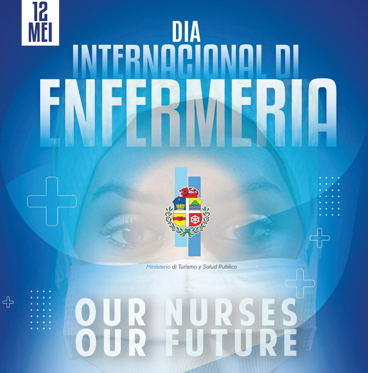 cu e dia special aki ta, “Our Nurses Our Future”. Minister di Turismo y Salud Publico sr. Dangui Oduber ta expresa su aprecio pa tur cu ta traha den enfermeria. Nan labor ta bisto entre otro den Hospital, Imsan, centronan di cuido di nos grandinan, den ambulance, oficina di dokternan di cas y specialistanan, Wit Gele Kruis y laboratorionan. Trabou di un enfermero/a no ta facil. Pa nos pashentnan e enfermeranan ta esnan cu ta percura pa nan come, bebe y tuma nan medicamentonan na tempo. Boso empeño y dedicashon ta di suma importancia pa determina e calidad di cuido cu nos pashentnan ta ricibi.