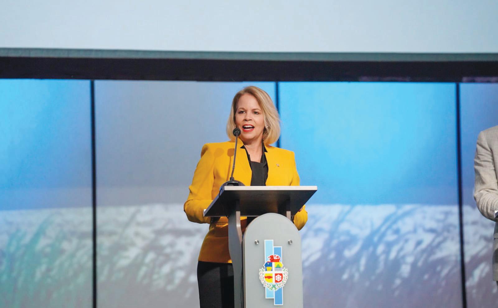 conhunto cu Minister Rob Jetten, Prome Minister Evelyn Wever-Croes a duna su discurso final gradiciendo tur e paisnan y institucionnan den Caribe, America Central, Europa y Pacifico pa nan