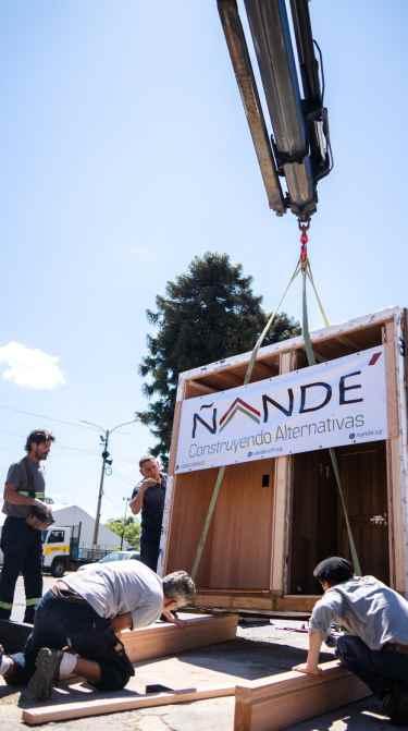 El proyecto Ñandé fabrica viviendas sociales en madera y promueve la capacitación a jóvenes de escasos recursos.
