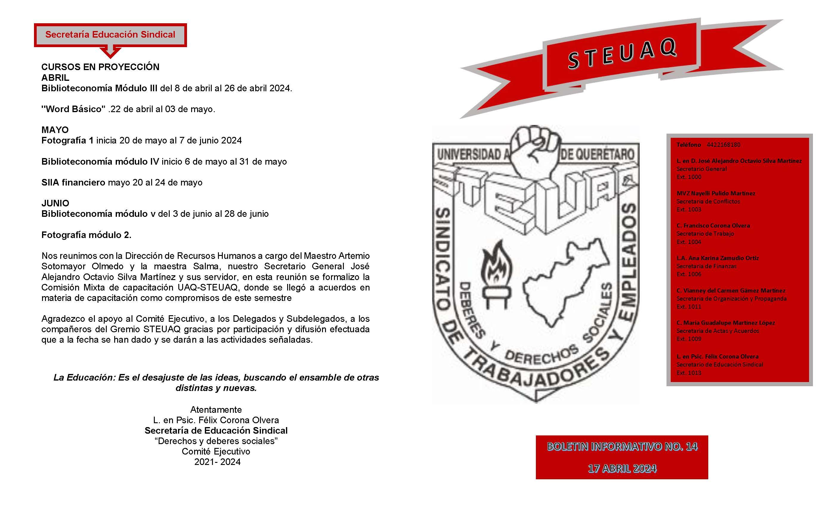 BOLETÍN INFORMATIVO #14 by boletin steuaq - Issuu