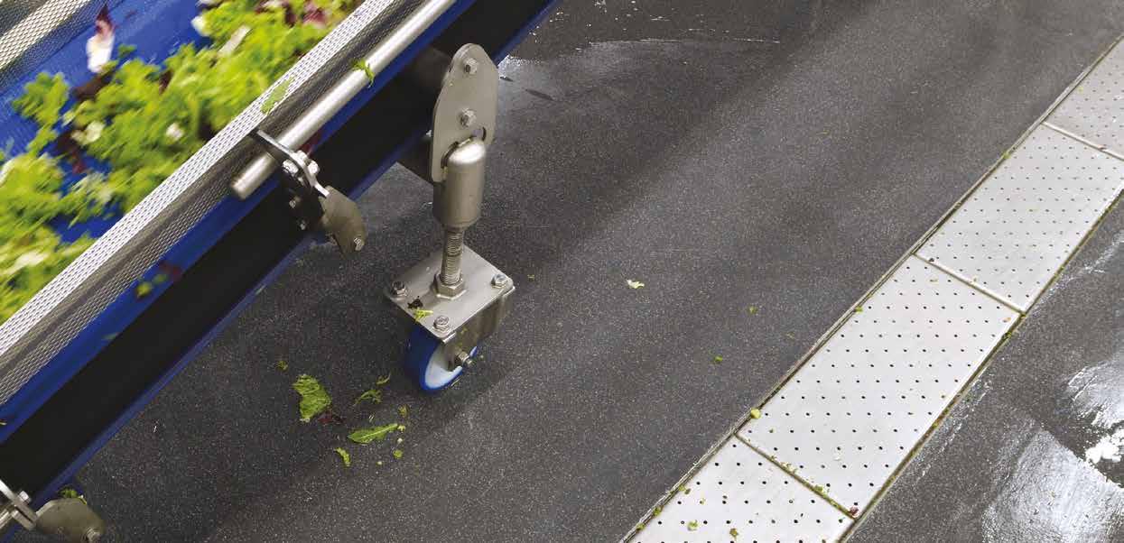 To prevent slipping, companies in the food industry must take preventive measures. This means that the floor must provide satisfactory grip under all conditions. German industry standards are used to determine the anti-slip properties of floors. DIN 51130 applies to general work areas and DIN 51097 to areas with high humidity.