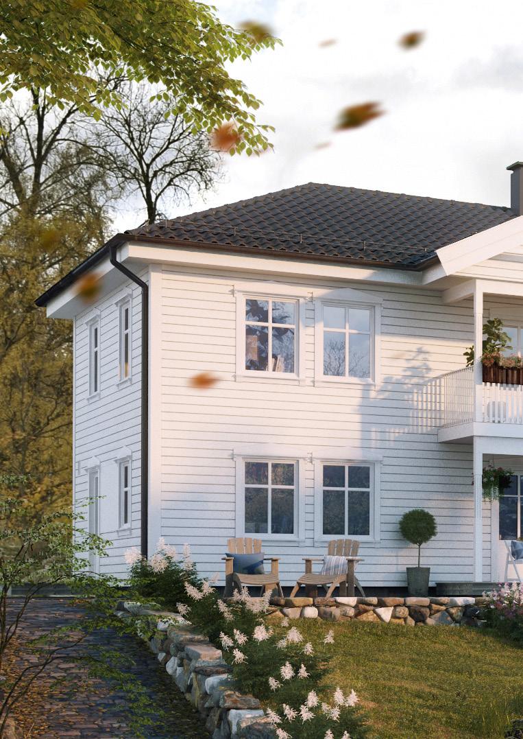 Det tas forbehold om trykkfeil. Alle 3D-illustrasjoner, plantegninger og foto er kun ment som illustrasjoner og vil kunne avvike fra standard leveranse. For eksakt funksjonsbeskrivelse og informasjon om den enkelte bolig, henvises det til leveransebeskrivelse og 1:100-tegninger. For info om energimerking av husene henviser vi til boligpartner.no.