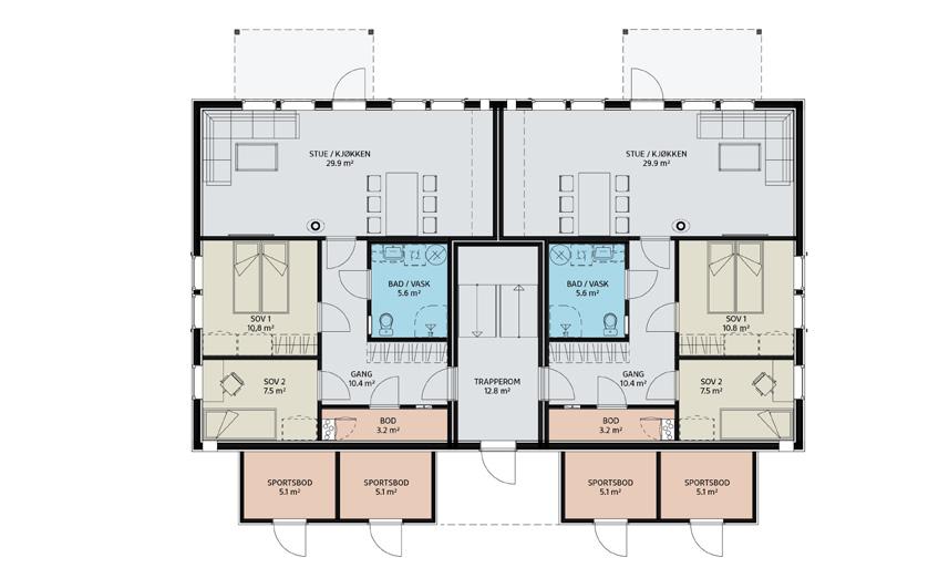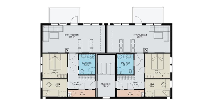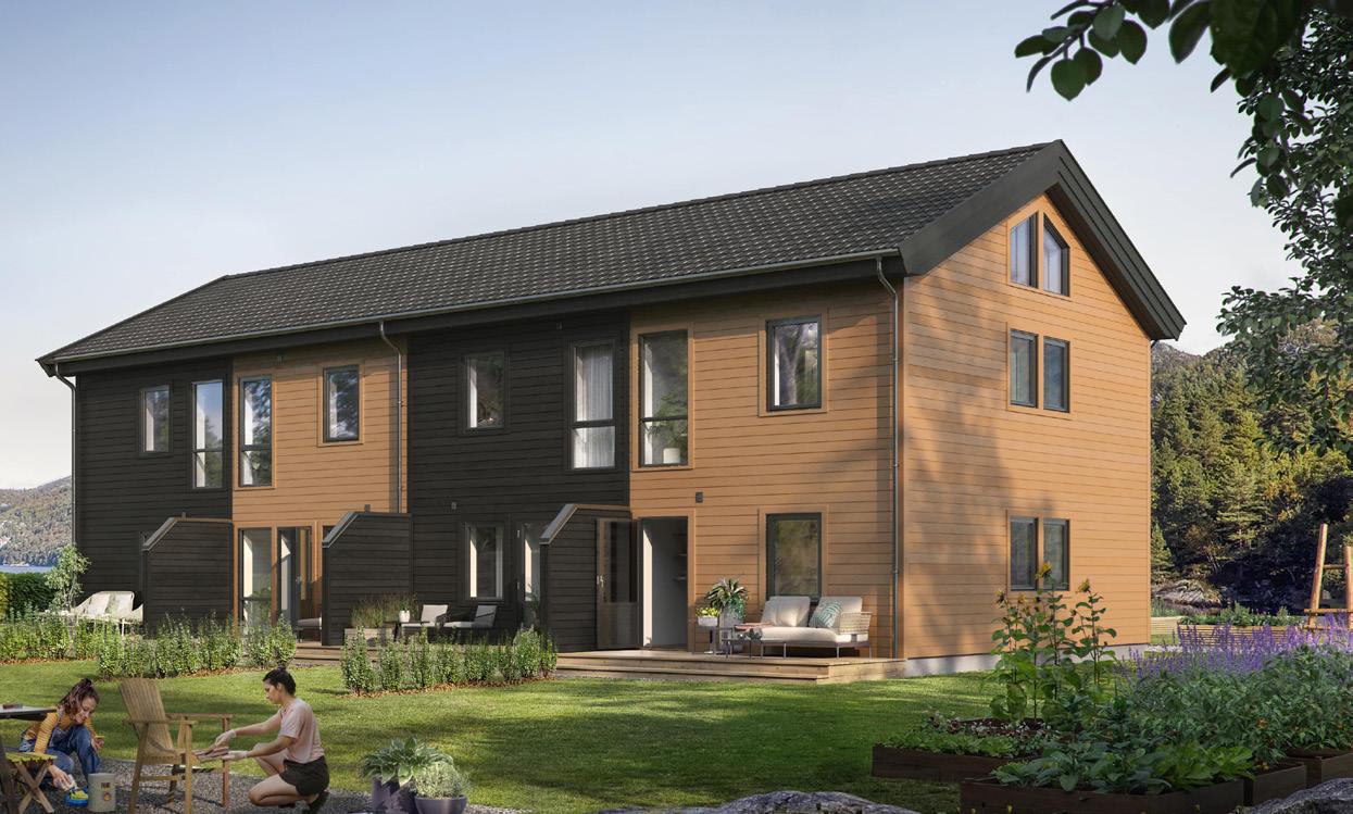 Det tas forbehold om trykkfeil. Alle 3D-illustrasjoner, plantegninger og foto er kun ment som illustrasjoner og vil kunne avvike fra standard leveranse. For eksakt funksjonsbeskrivelse og informasjon om den enkelte bolig, henvises det til leveransebeskrivelse og 1:100-tegninger. For info om energimerking av husene henviser vi til boligpartner.no.