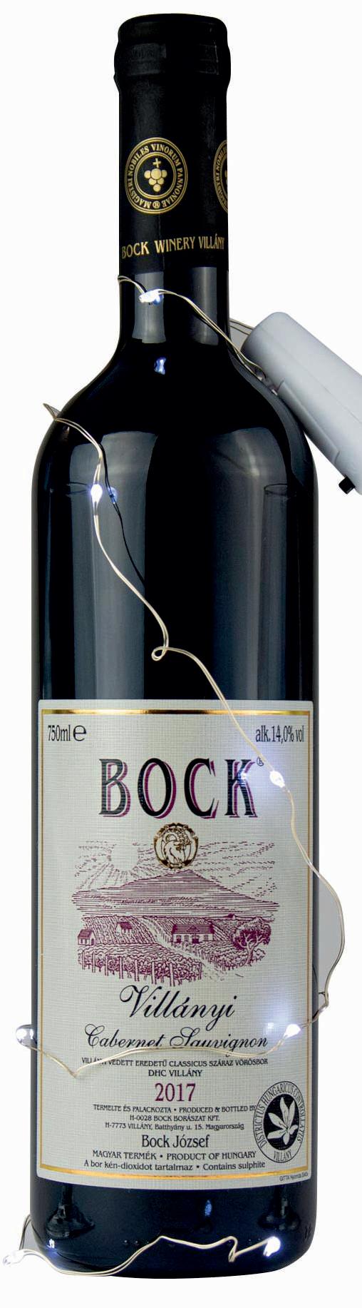 Leírás: Fehér, natúr vagy színes kartondobozban egy palack Bock Cabernet Sauvignon, 2017-es évjárat, 2 db boros kehellyel, borosüvegbe illeszthető fényfüzér 10 LED izzóval, ha elfogyaszto uk a palack tartalmát szép asztali dísz készíthető belőle. Emblémázási javaslat: a díszdobozon szitanyomással, poharakon gravírozással vagy kerámiaégetéssel