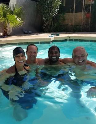 Learning in your hometown may seem convenient but home typical distractions and obligations are actually obstructing the process! 36 round trips to a local pool within 4 month, likely during rush hours, are time consuming, stressful and disruptive. In addition, long time gaps between lessons over 4 month prevent accelerated muscle memory development! The solution is our 4-day swim class in privacy in an ideal adult learning environment in our swim retreat in AZ. Our swimming course for adults is designed for those who want quick, guaranteed success in a comfortable and private setting. Take advantage of Klaus Bolle's 40 years of adult teaching experience! Focus for 4 days exclusively just on you and your 36 lessons. Finally enjoy and celebrate the success of at least 30 unassisted pool crossings within 2 hours on Monday, the last day of your 4-day class - GUARANTEED!