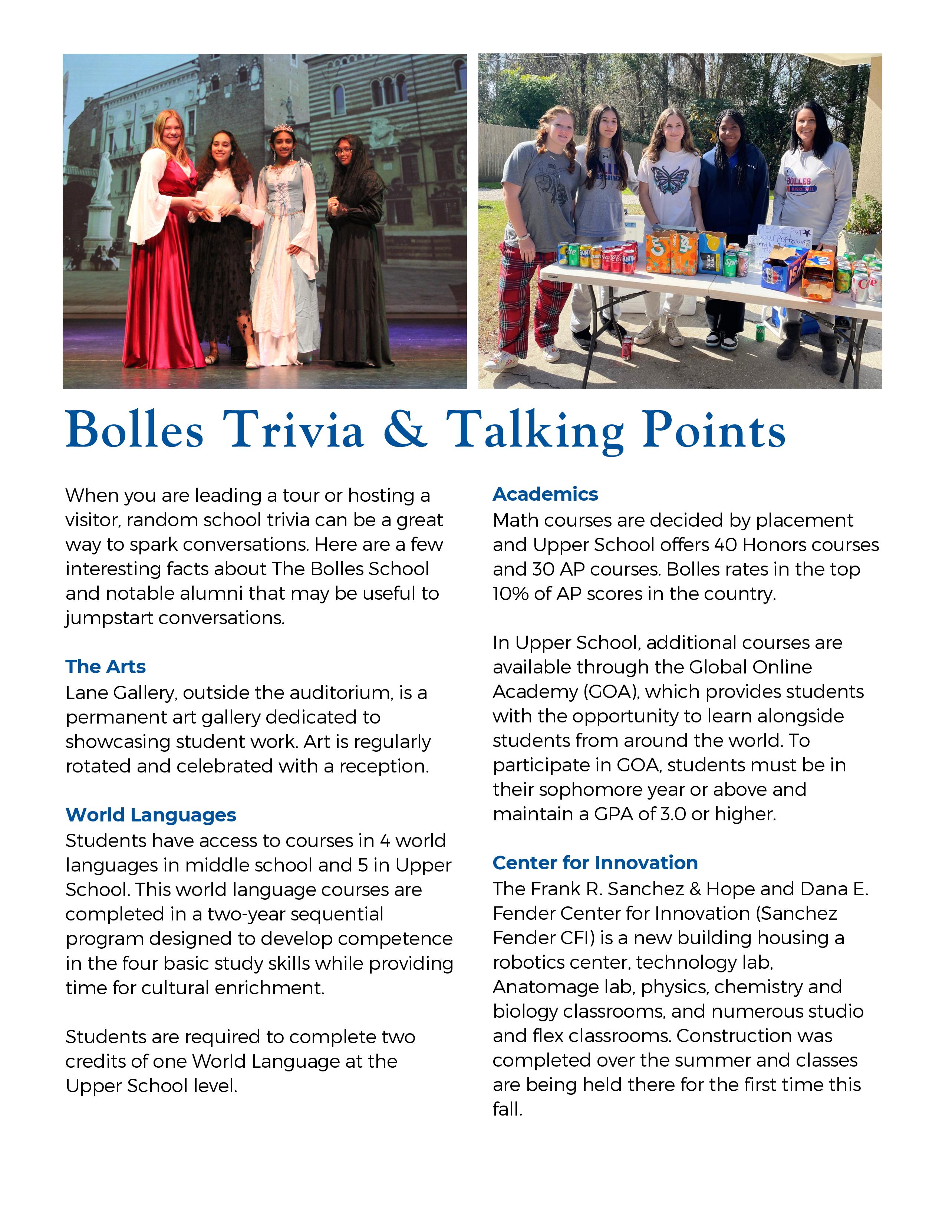 Bolles Admission Middle School Ambassadors Handbook, 2024-25
