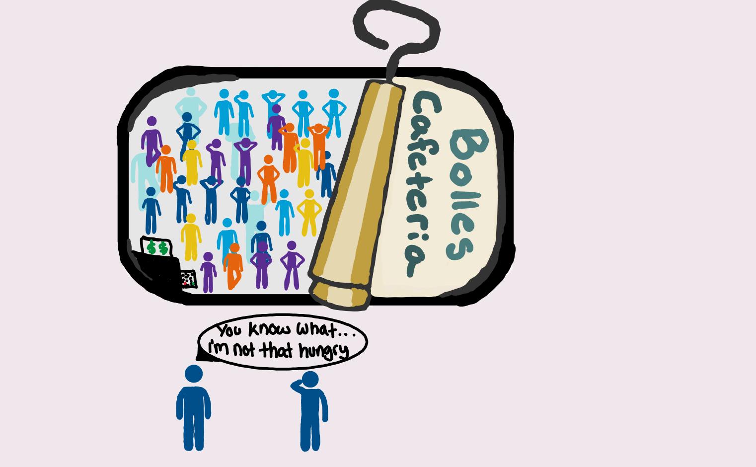It’s a well-known fact that the earlier one makes it to the cafeteria for lunch, the better. Veterans of the lunchroom line know that it often takes more time getting out of the line than it does to eat their food. Think about it, students get thirty-five minutes for lunch every day and up to twenty minutes are spent on simply getting and paying for their food. For most students, this means being packed in an overcrowded cafeteria fighting for a spot in line with hundreds of other people.