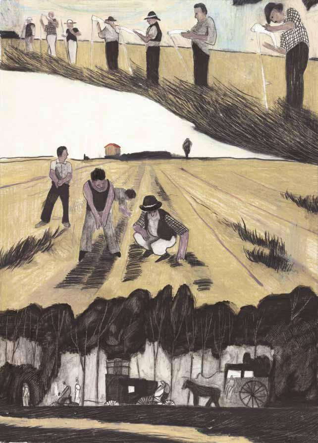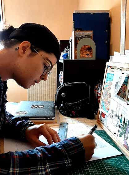 alla curatela di Giulio Vesprini e al calore delle persone che ho incontrato, mi sono potuto immergere nella storia di Don Bosco; unendo loro racconti alla mia visione abbiamo dato vita a uno scambio che si è trasformato in una narrazione a più voci. Anche quando lavoro con fumetti sono sempre alla ricerca di storie che agiscano da collante tra le persone. La mia prima graphic novel, con la sceneggiatura di Francesco Pelosi, parla di un episodio di resistenza antifascista avvenuto nel 1922 a Parma, città dove sono nato e vivo (Guido Picelli. Un antifascista sulle barricate Round Robin, 2022). Il mio secondo progetto editoriale è un libro illustrato che sogno possa vedere presto la luce. Abbandonata la tecnica dello scratchboard, ora mi dedico di più ai pennarelli per la loro praticità e per le texture che posso ottenere.