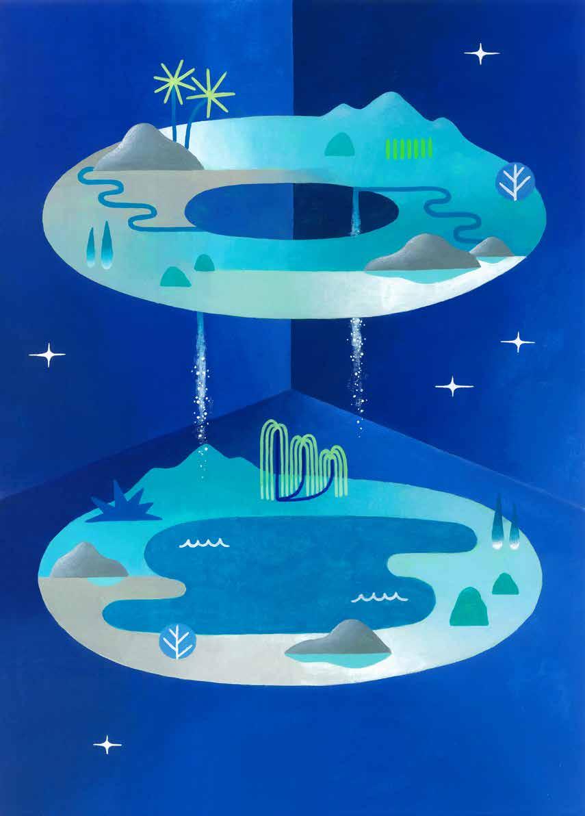 I mainly use oil paints, a technique not commonly seen in illustration due to time constraints. I often work on large canvases, far larger than standard editorial size. In my projects, I love seeking a nexus between the minimal, an instructive style of illustration, and the tradition of landscape painting, especially from the medieval period, in which perspective is notably absent.