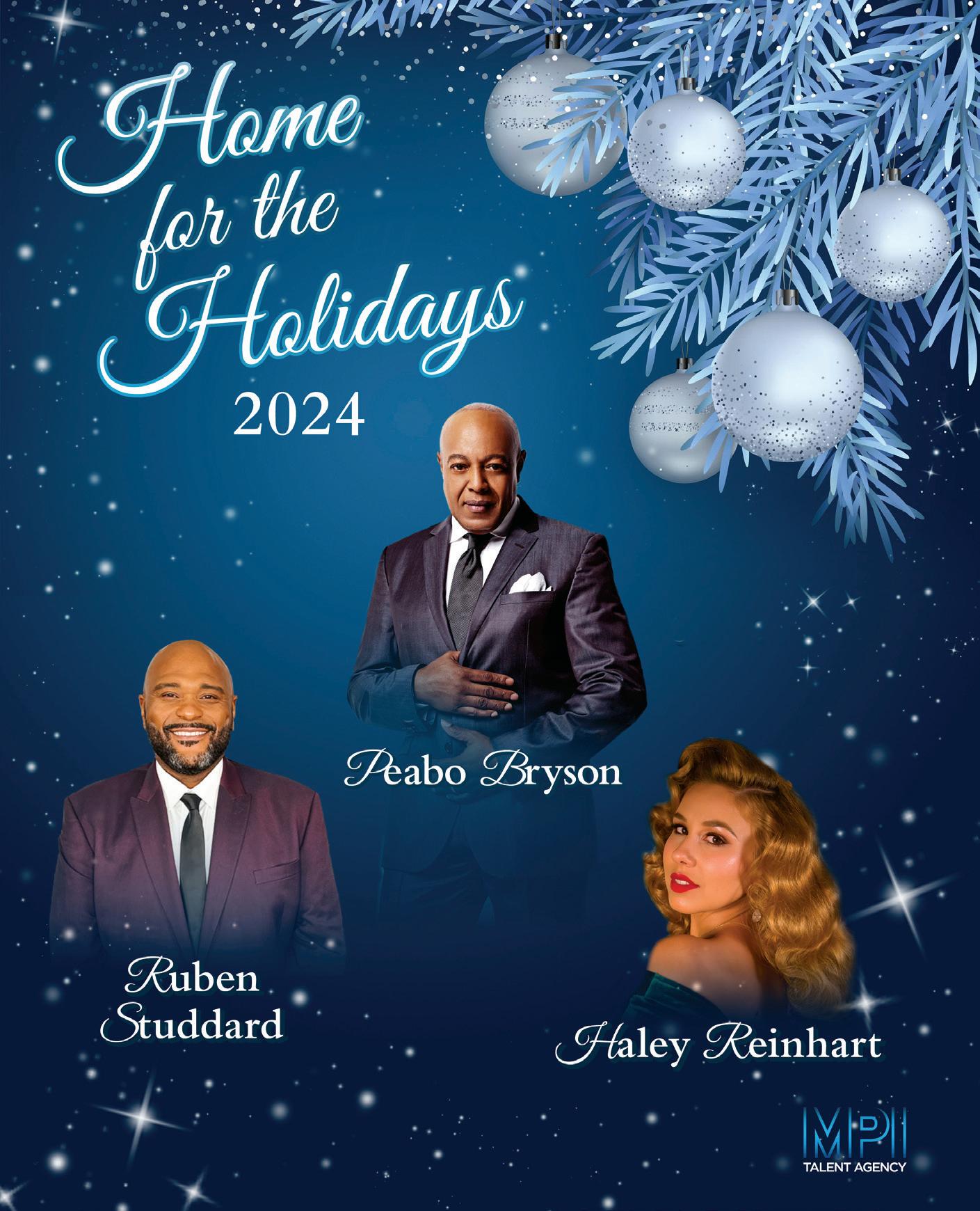Kick off the holiday season with an incredible night of music from three world-renowned artists! Home for the Holidays stars two-time Grammy Award winner and twotime Academy Award winner Peabo Bryson; American Idol winner and Grammy Award nominee Ruben Studdard; and double-platinum recording artist Haley Reinhart. These artists have combined for an astounding nine platinum and gold albums, forty-six (46) Billboard top 25 singles, and eight Billboard #1 singles.