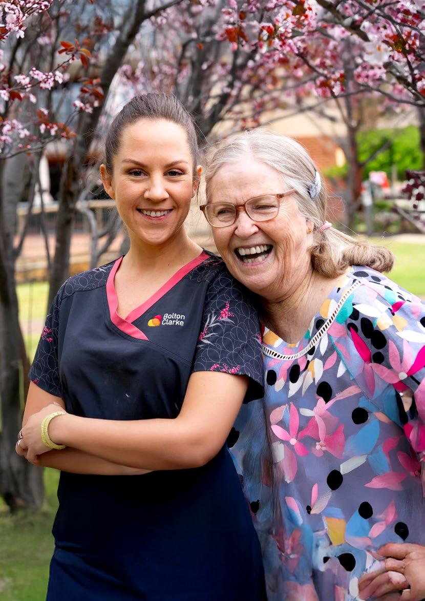 Cover image: Personal Care Worker Gerda with resident Carolyn at Menora Gardens residential care home.