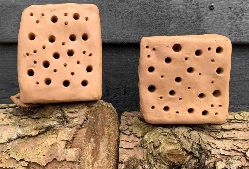 Wist je dat sommige bijen heel goed zijn in metselen? Deze “metselbijen” leggen eitjes in kleine gangen en metselen ze daarna dicht. Zo hebben hun eitjes een veilige plek om te groeien. Help ze een handje en maak een bijenbaksteen voor ze!