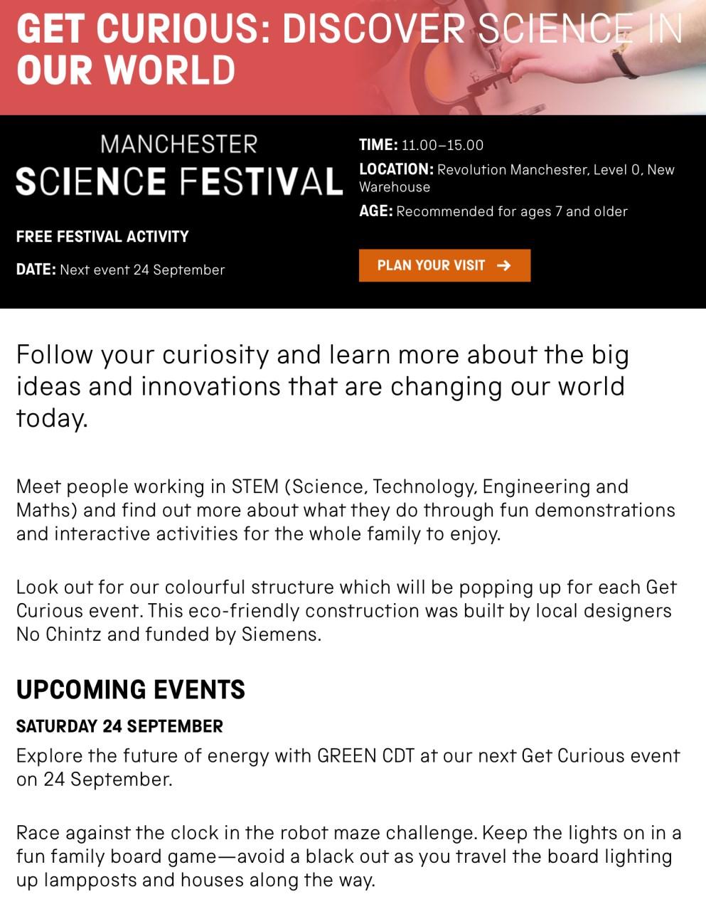 Discover what's in store here : https://www.scienceandindustrymuseum.org.uk/manchesterscience-festival/2022-programme
