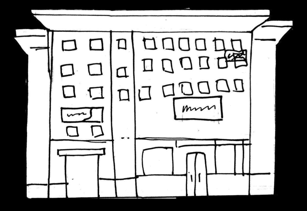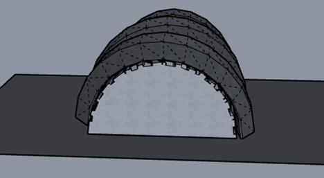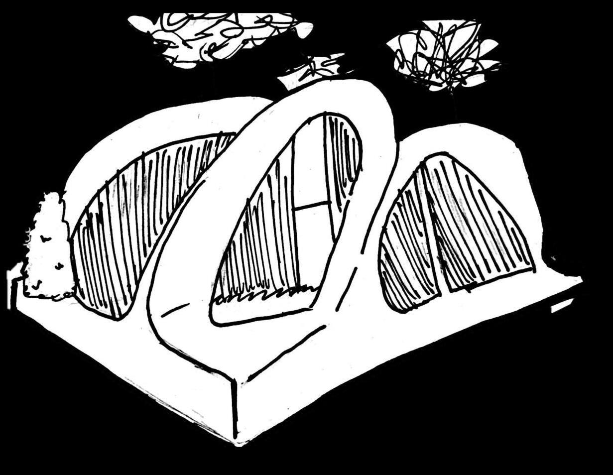 I decided on adding to my design rather than take away from it. Eventually I came up with this design adding three arches above the building in alternating directions.