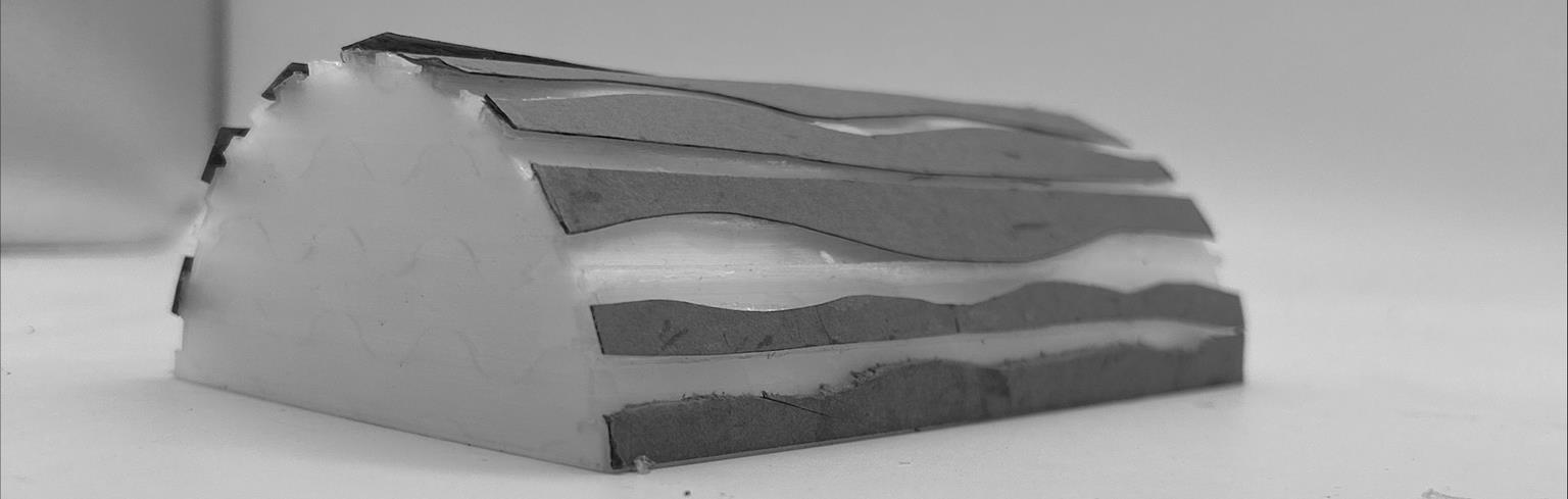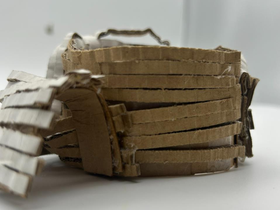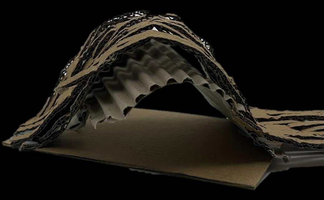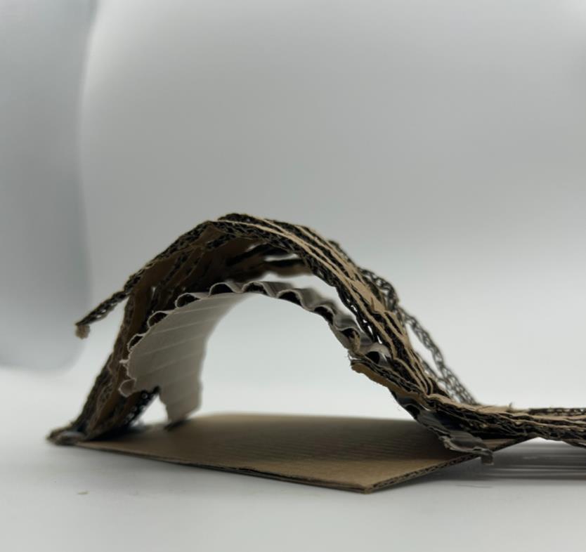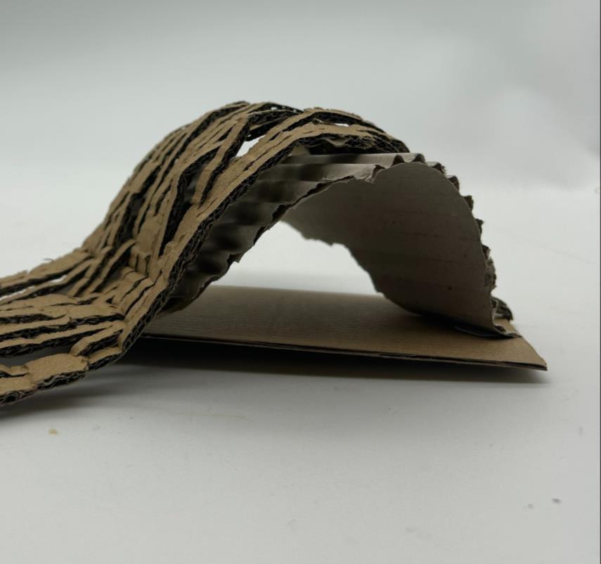 As for the wavy card layered on top this can be interpreted in many ways however it is flexible and pliable making sure it’s not a fixed shape but rather and organic form.