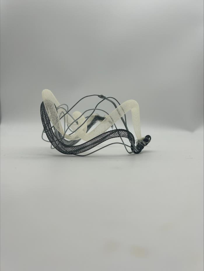Using wire to let me experiment with the structure and manipulate them into different shapes The contrast between the black and the white material creates a nice juxtaposition in the design. The shapes also resemble an ocean or wave which ties back the nature and organic theme.