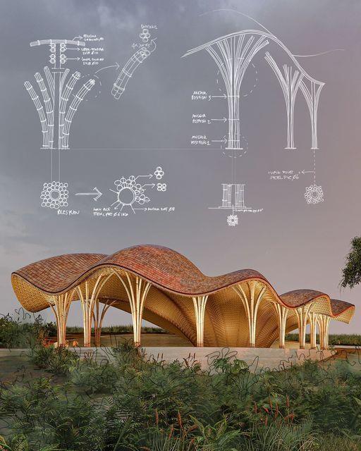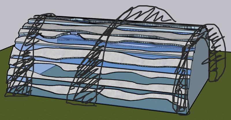 This is the main structure for the building. As you can see in the model it has folds and lines replicating the similar shapes you’ll see in a bark of a tree.