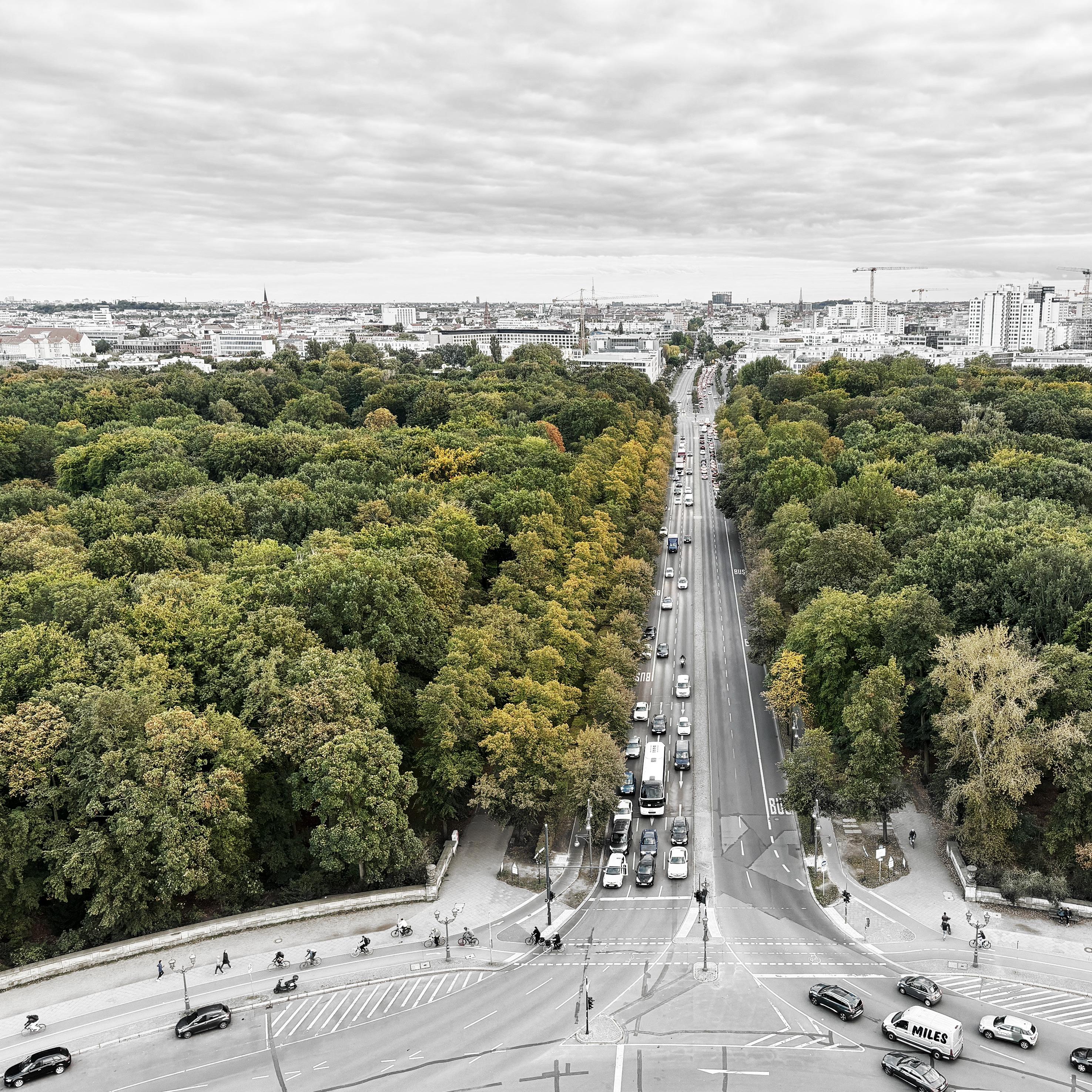 Tiergarten Park serving as the Berlin's green lung akin to London's Hyde Park. Nestled close to the city center and bordered by iconic landmarks like the Brandenburg Gate and Potsdamer Platz, this expansive urban oasis spans 210 hectares, slightly surpassing the acreage of Hyde Park.