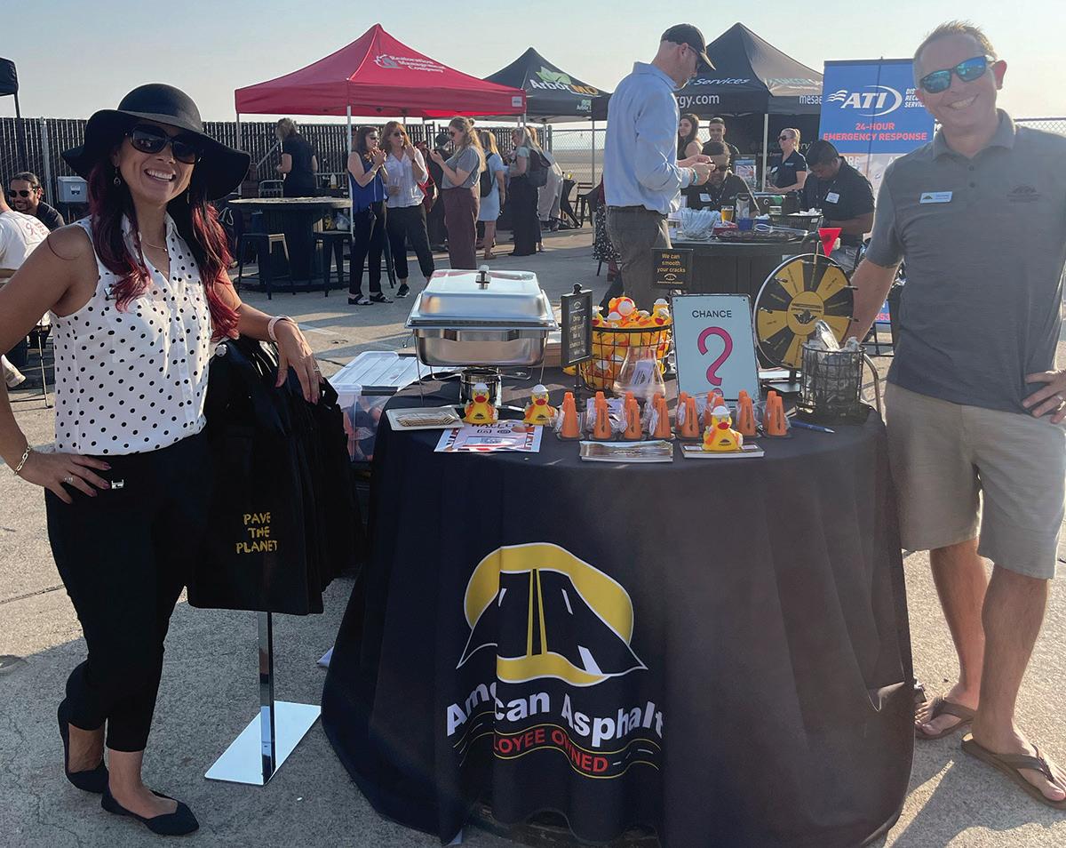 Jeannie Nyberg and Chris Nyberg of American Asphalt display fun gifts and information about their company’s services.