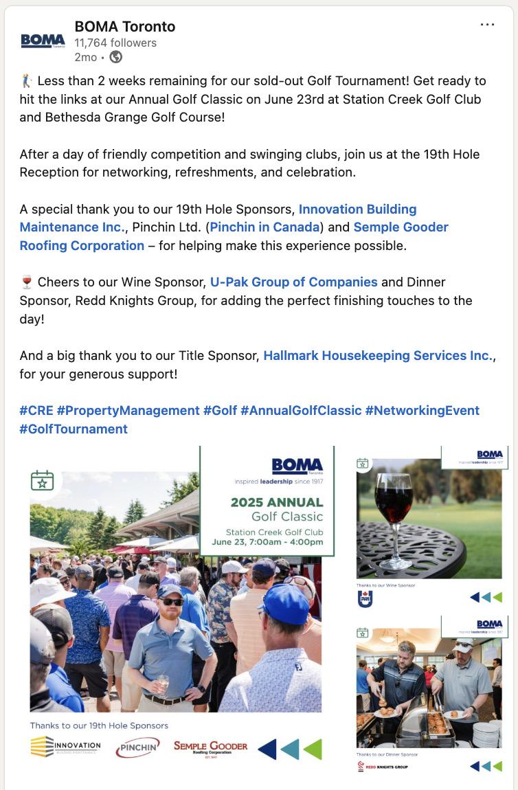 BOMA Toronto sponsors gain great exposure to a captive audience of Commercial Real Estate Industry leaders. Showcase your organization at our high profile events and elevate your company’s brand, products or services through on site promotion, digital media marketing and networking.