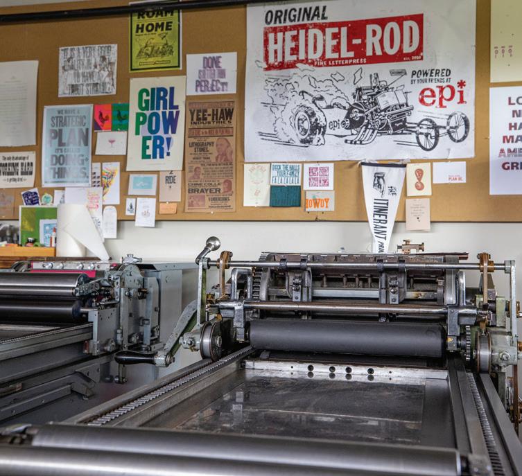 of support. It is a meeting space and a maker space and a place for social chemistry. It is a print shop that is also home to a few frisbee golf holes, tiny houses, art studios, fire pits, breakout rooms, and limitless exploration. With 38.5 kilowatts of solar power, an emerging food forest, and an elaborate water catchment system, Blunderbuss, which, at any given moment, is home to 24 different people from around the world, is also a beacon of sustainability.
