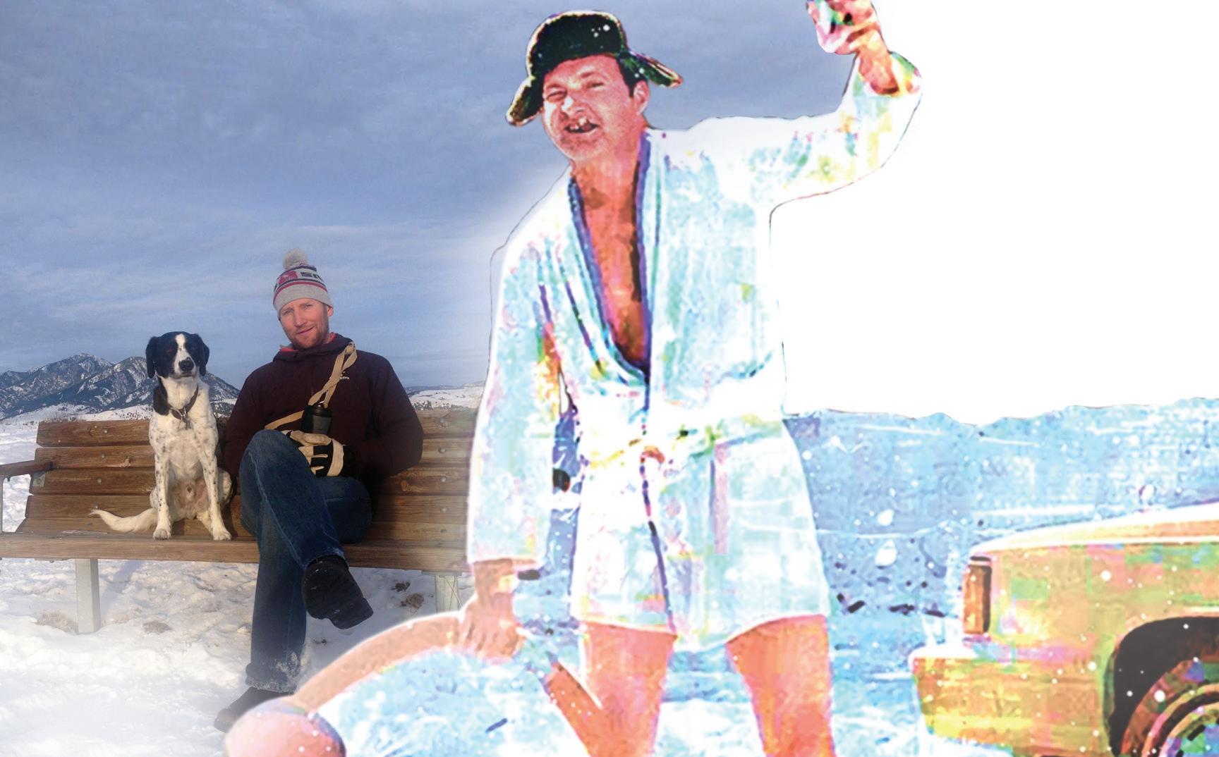 Travis Andersen | Jeff Leger doing his signature leap into outer space with a backpack full of bubble wrap.