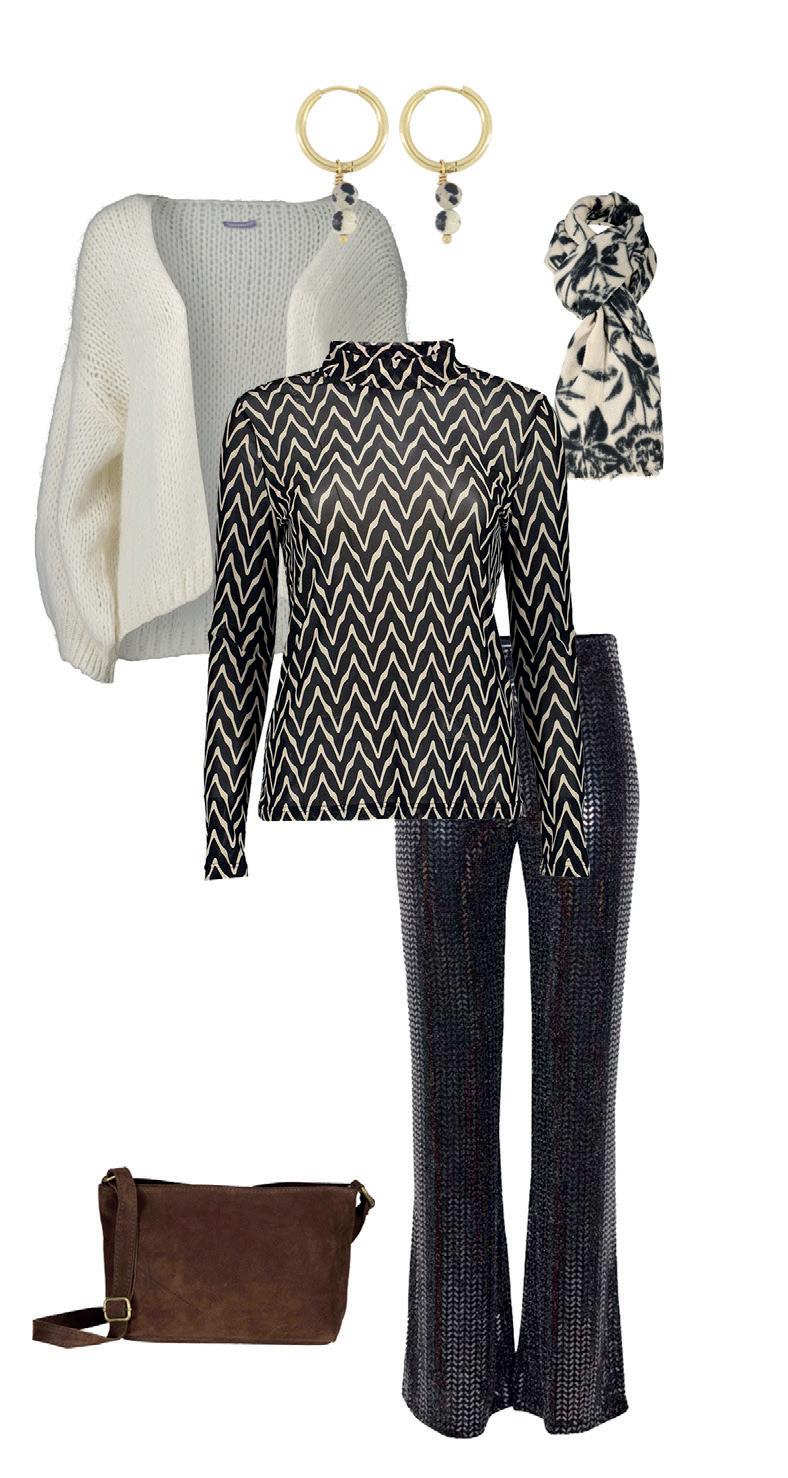 1. BOMONT, VEST € 59,95 2. ZUSSS, OORBELLEN € 16,95 3. GEISHA, COLTRUI € 49,99 4. ZO, SJAAL € 22,95 5. ICHI, BROEK € 49,95 6. BOMONT, TAS € 49,95 1. EMBRACE DESIGN, OORBELLEN € 24,95 2. FREEQUENT, BLAZER € 69,95 3. 360 FIVE, HOED € 59,99 4. MSCH COPENHAGEN, BLOUSE € 59,95 5. FREEQUENT, PANTALON € 59,95 6. BOMONT, RIEM € 22,95 7. ZO, TAS € 44,95 2. 5. 2. 4. 4. 1. 3. 5. 6. 7. Vind in één van onze 12 winkels jouw outfit voor de feestdagen! TREND ITEM! 11 1. 3. ZIGZAG PRINT 6.