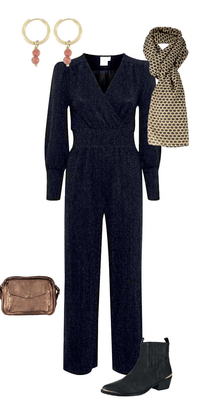 compleet! 1. ZUSSS, OORBELLEN € 16,95 2. ICHI, JUMPSUIT € 99,95 3. ZO, SJAAL € 21,95 4. ZO, TAS € 40,95 5. SPM, ENKELLAARS € 109,95 1. SELECTED FEMME, BLAZER € 99,99 2. EMBRACE DESIGN, OORBELLEN € 27,95 3. FABIENNE
