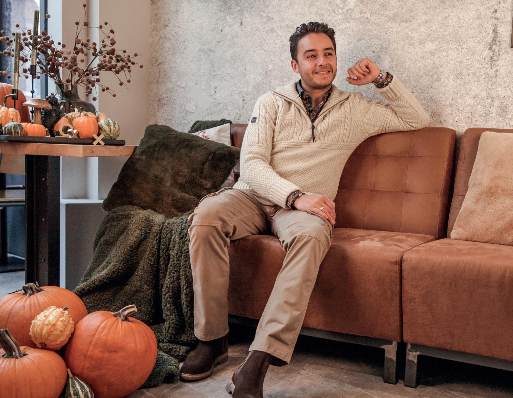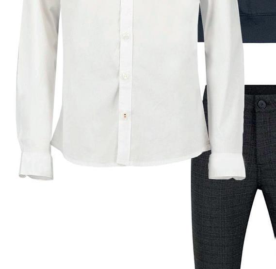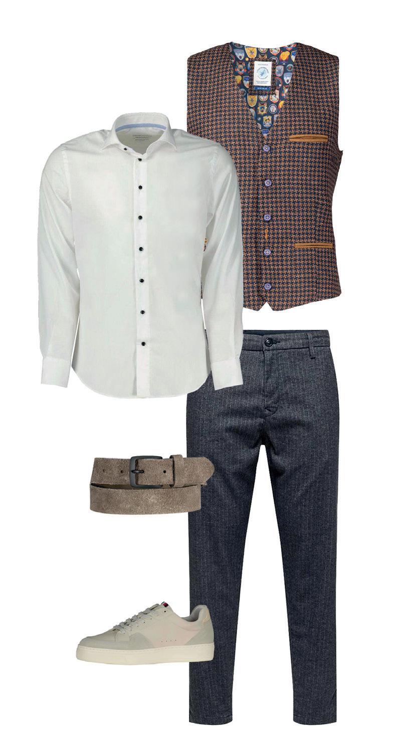 32 BLUE INDUSTRY , CHINO € 99,95 RALPH LAUREN , VEST € 199,OVERHEMD € 129,95 MC GREGOR , LAARS € 149,95
