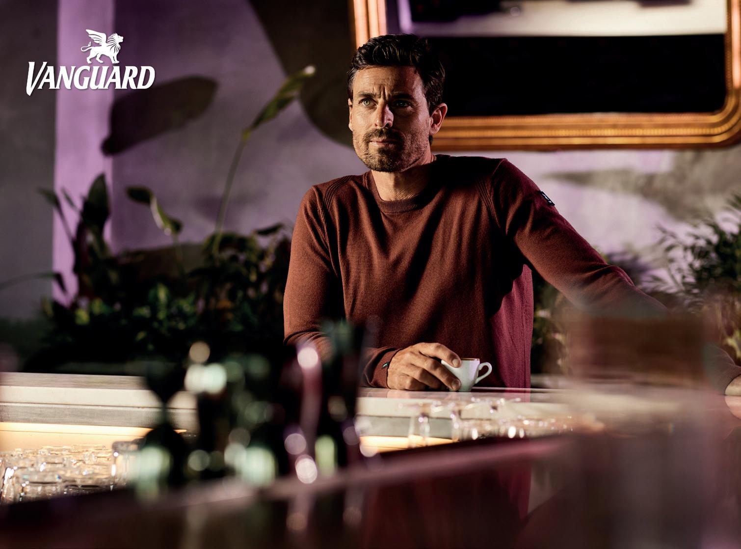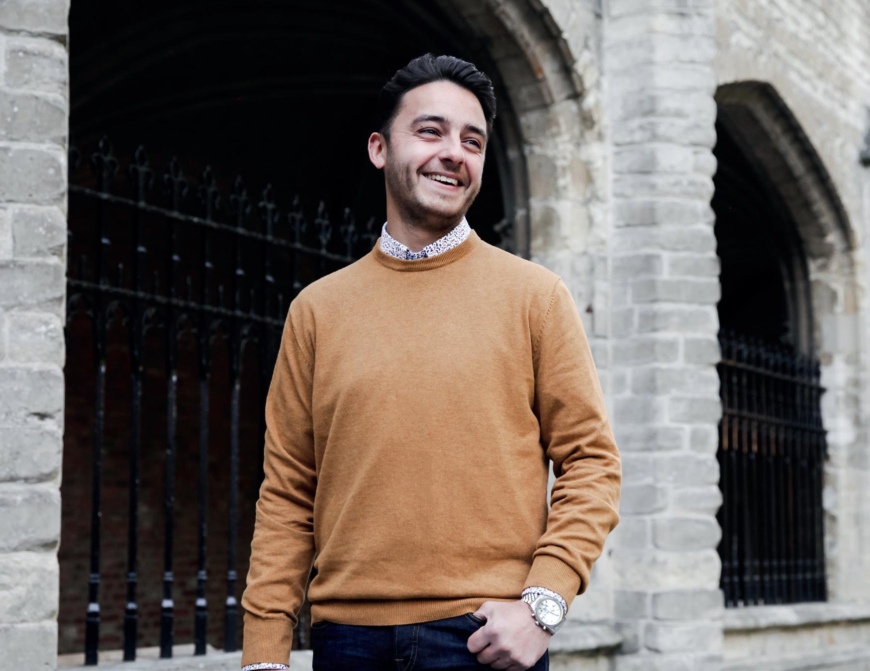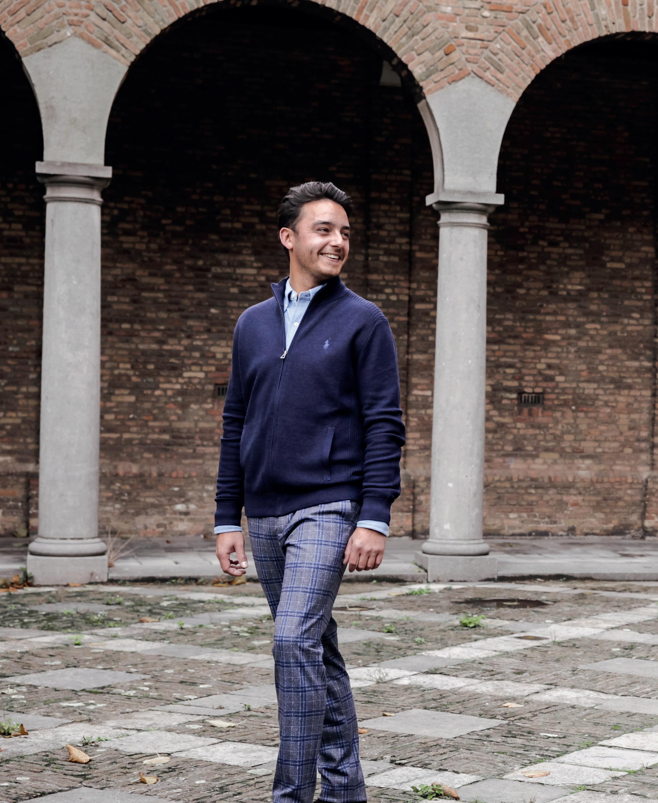 32 BLUE INDUSTRY , CHINO € 99,95 RALPH LAUREN , VEST € 199,OVERHEMD € 129,95 MC GREGOR , LAARS € 149,95