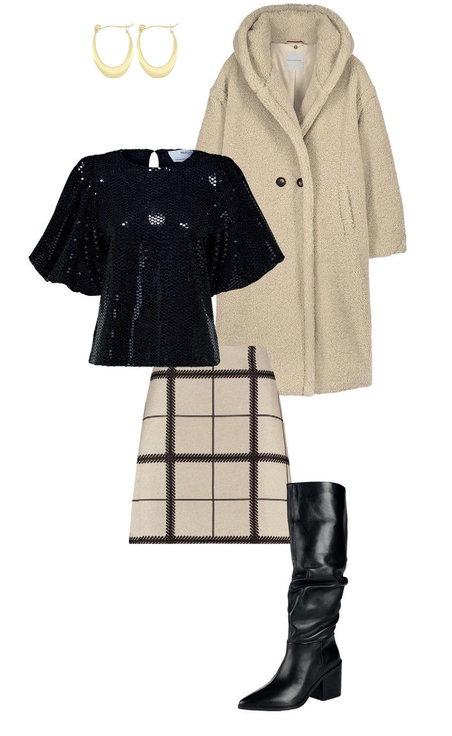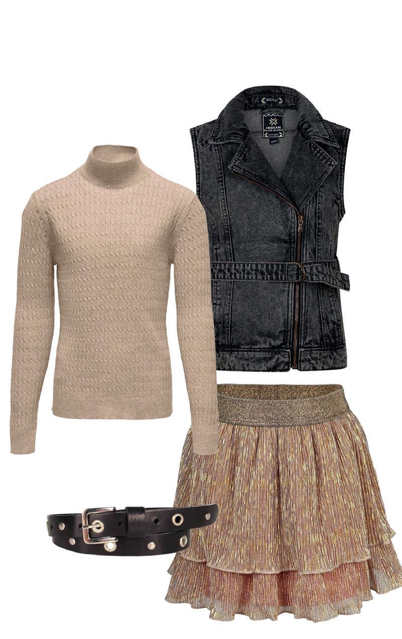 Feestoutfit inspiratie Deze winter zie je naast allerlei prints en kleuren ook een neutraal kleurenpalet terugkomen in de collectie. Combineer een item dat opvalt, zoals een broek met print of een rok met gouden stof, met een item neutraler van kleur. Je maakt de outfit compleet met een leuk teddy of spijker gilet!