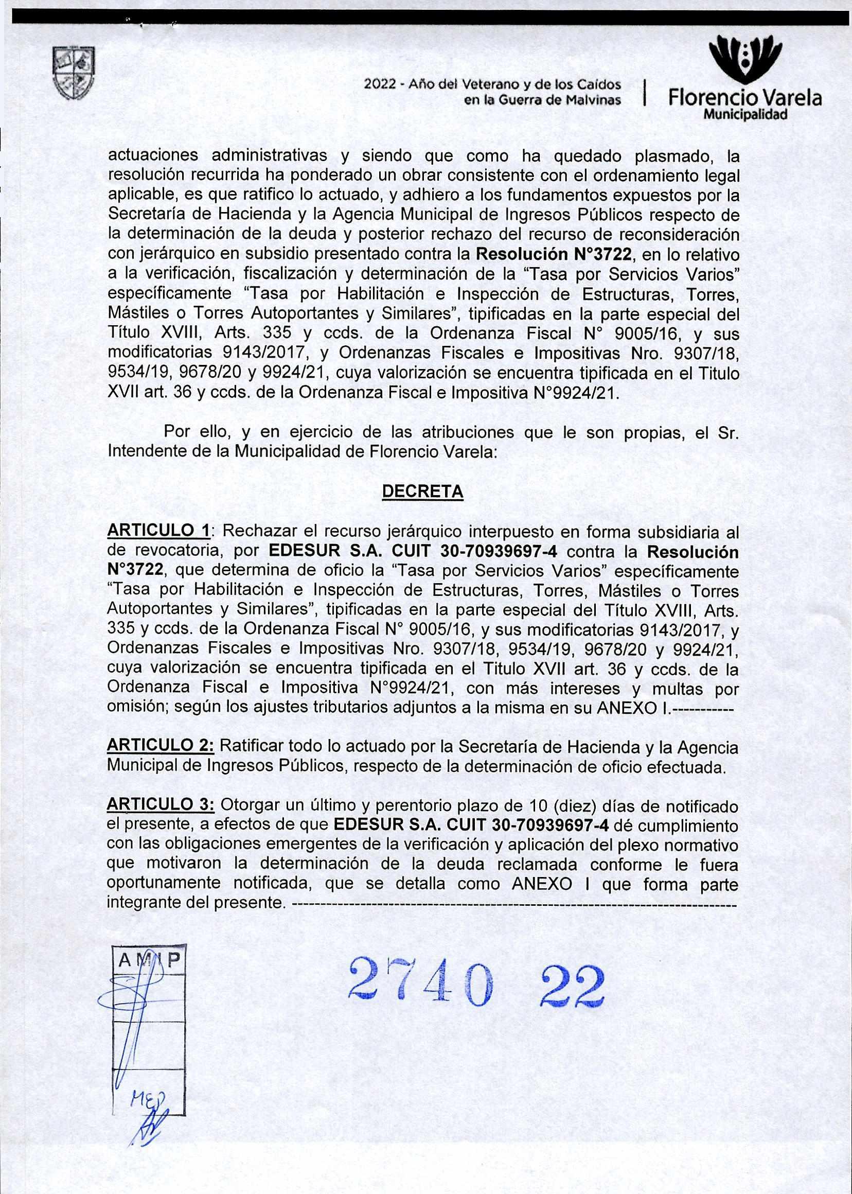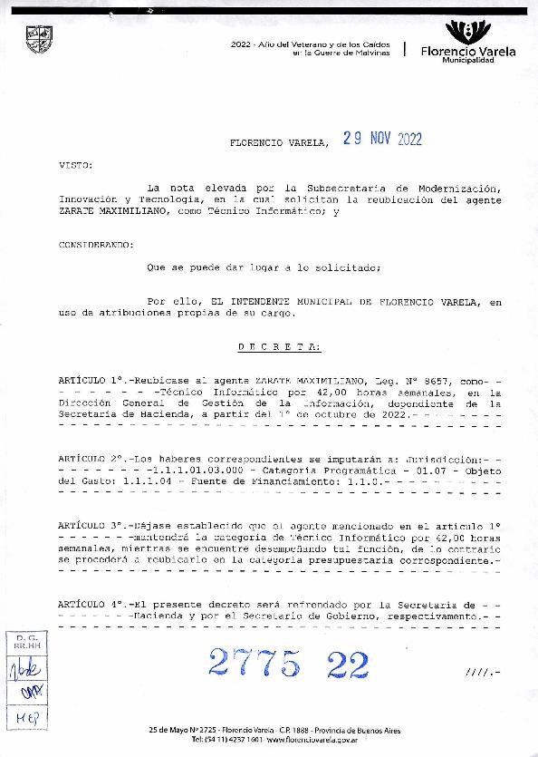 Florencio Varela, Noviembre de 2022 Boletín Oficial Municipal Año 10 Publicación: 11.-