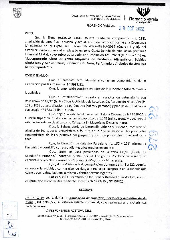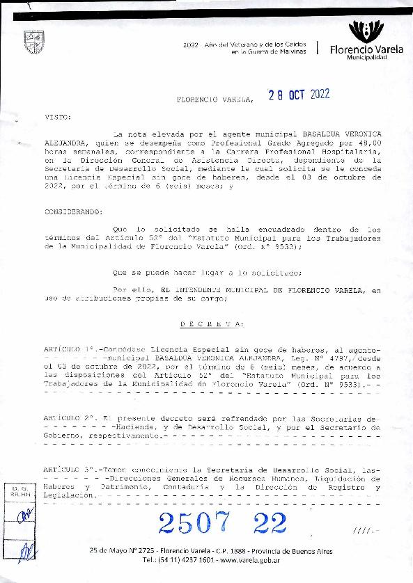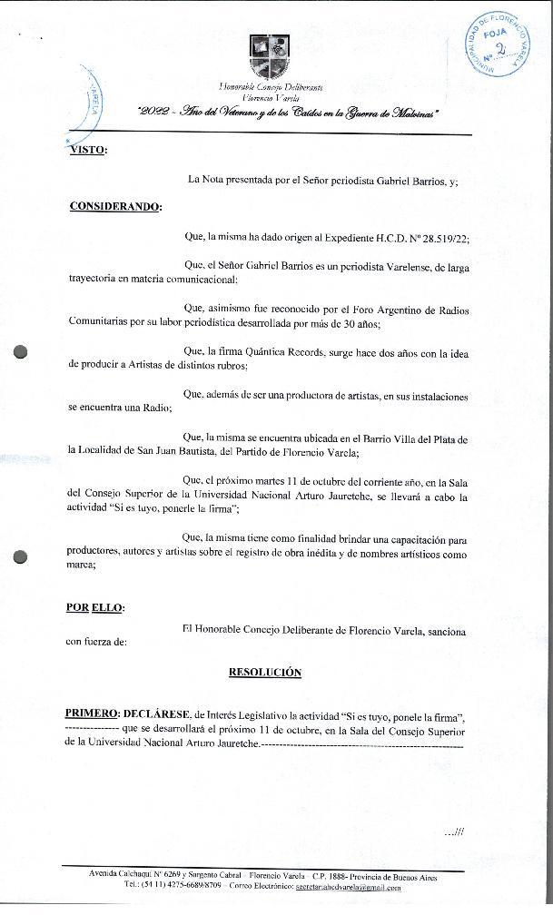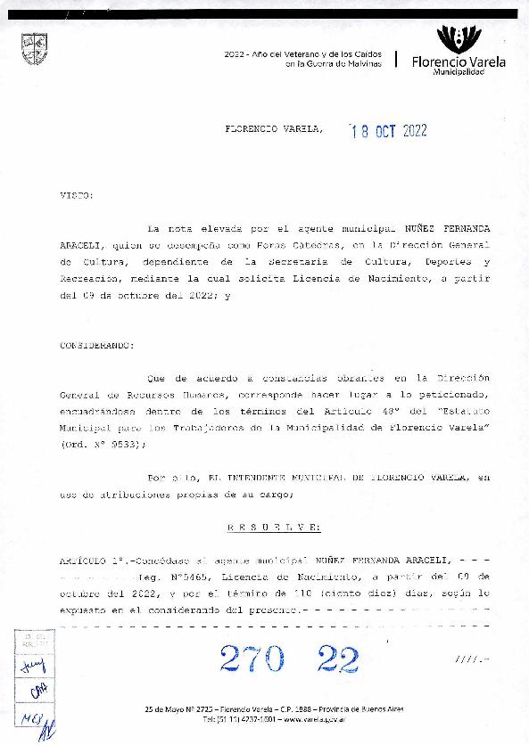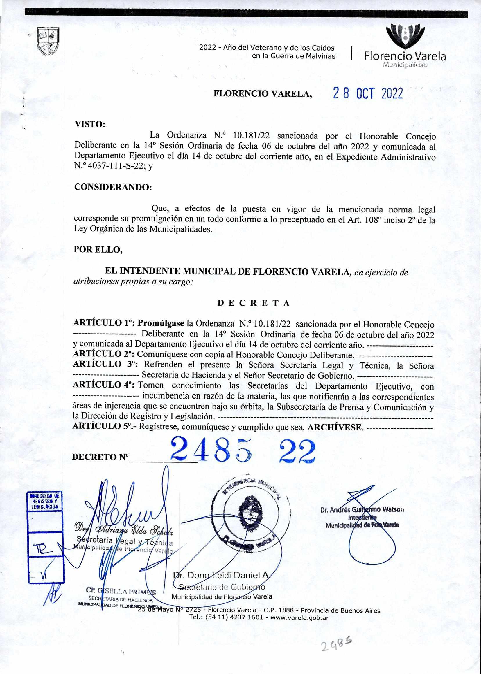 Florencio Varela, Octubre de 2022 Boletín Oficial Municipal Año 10 Publicación: 10.-