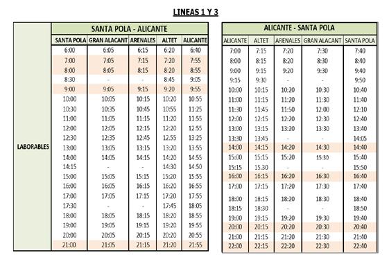 *Las horas de salida desde Óscar Esplá se realizarán 10 min antes de cada salida desde la Estación de Autobuses de Alicante.