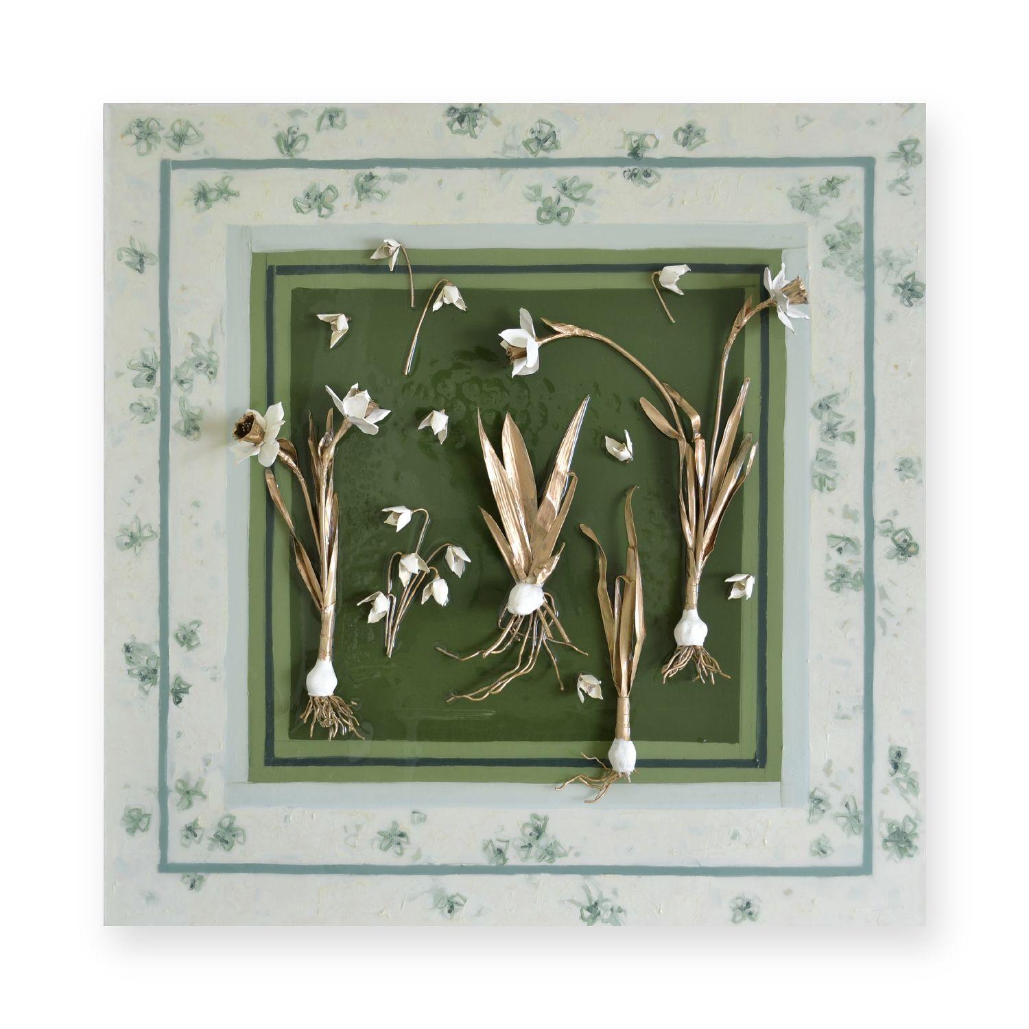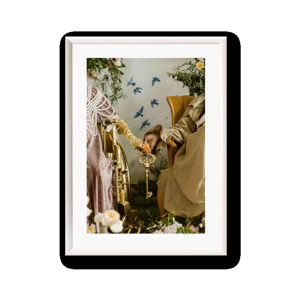 “The vanitas still life is a traditional composition that harkens back to 17th-century Holland. The painting itself is in the same classical style that would have been found in the halls of Misselthwaite Manor. The ephemeral nature of the eggs, nest, and wilting flowers remind us of the temporary nature of life. The wind rifles through theblankpaperswaitingtobefilledwith the next adventure, which the key unlocks.”