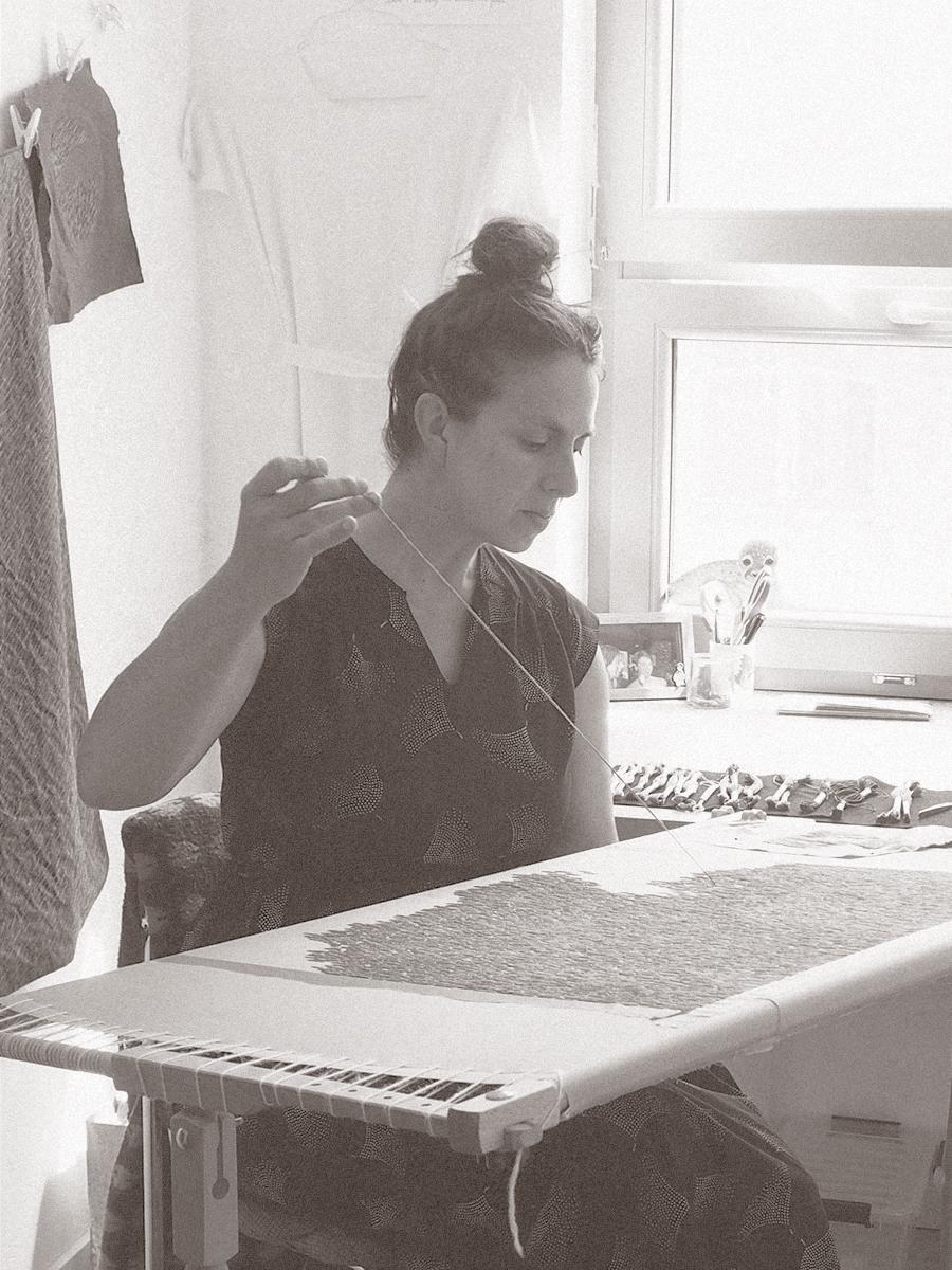 “My pieces were intricately and laboriously stitched over many weeks, a process of making that embodies the labor(emotional,spiritual,psychological and physical) inherent to experiences of grief,depression,healing,andgrowth.”