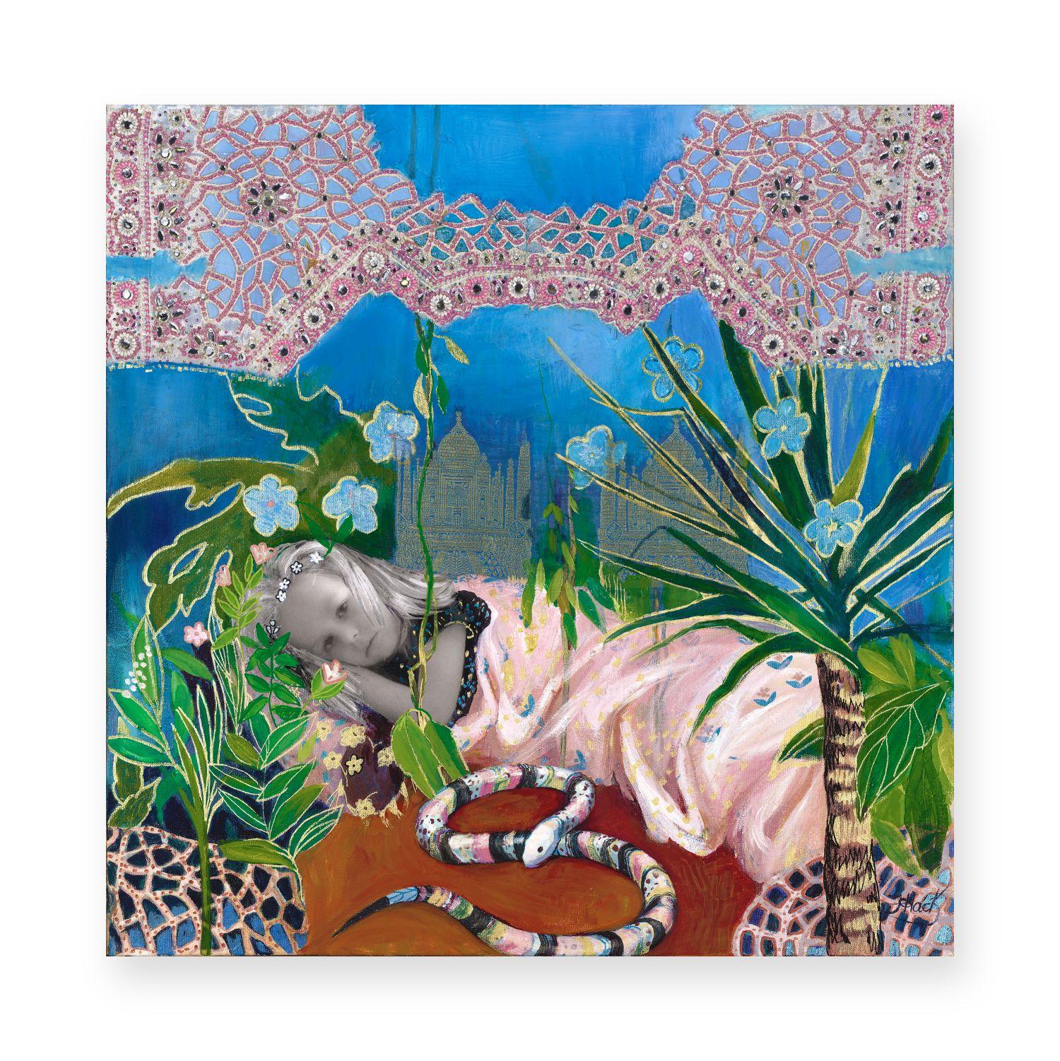 Julia Hacker Acrylic, Fabric from India, and Collage on CanvasABOUT THE ART