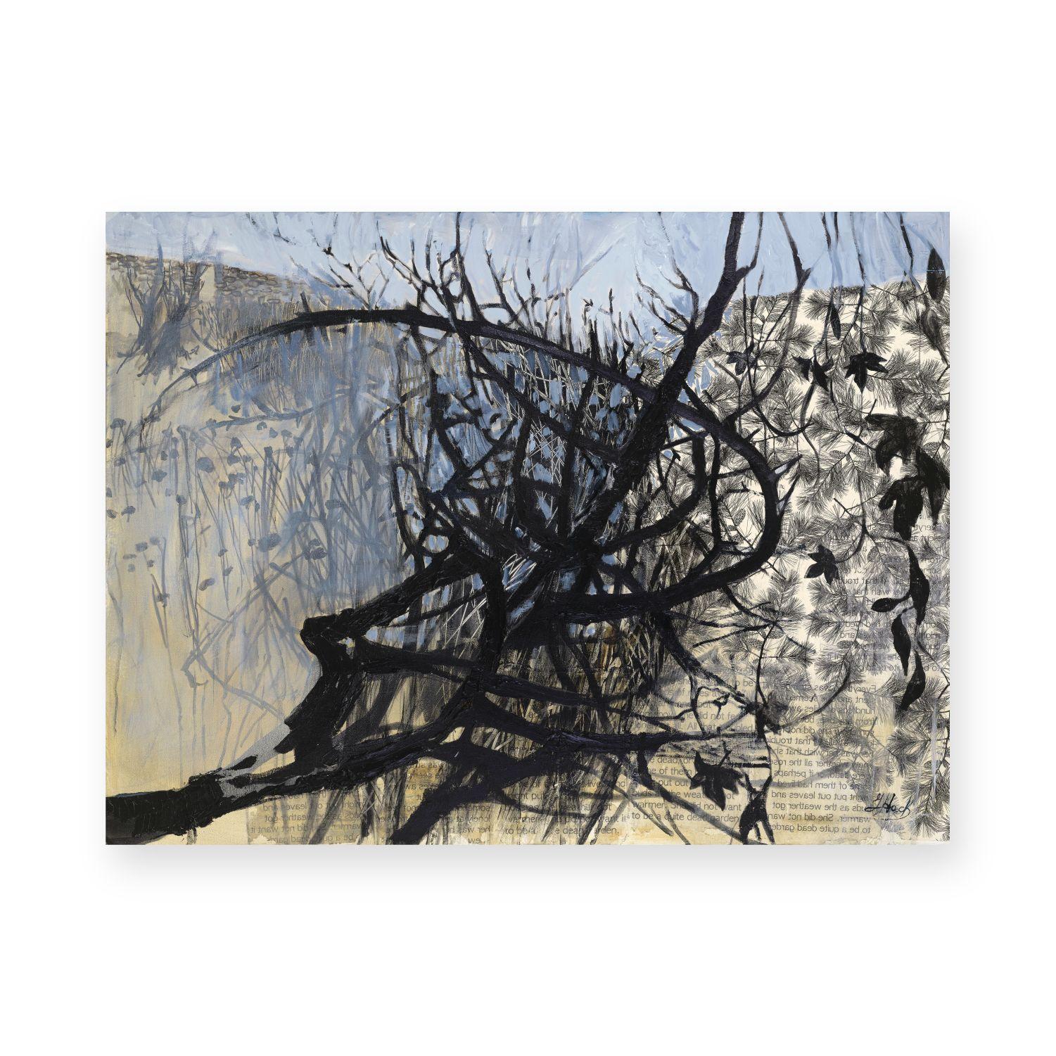 “When I painted Awakening I was listening to Vivaldi's Four Seasons and looking out of my window in winter. I originally painted in black and white. Thenthespringcameanddidanumber onmeandIaddedplantsgrowingand color.Thedeadnessisstillthere,butit's subduedbynewgrowth.”