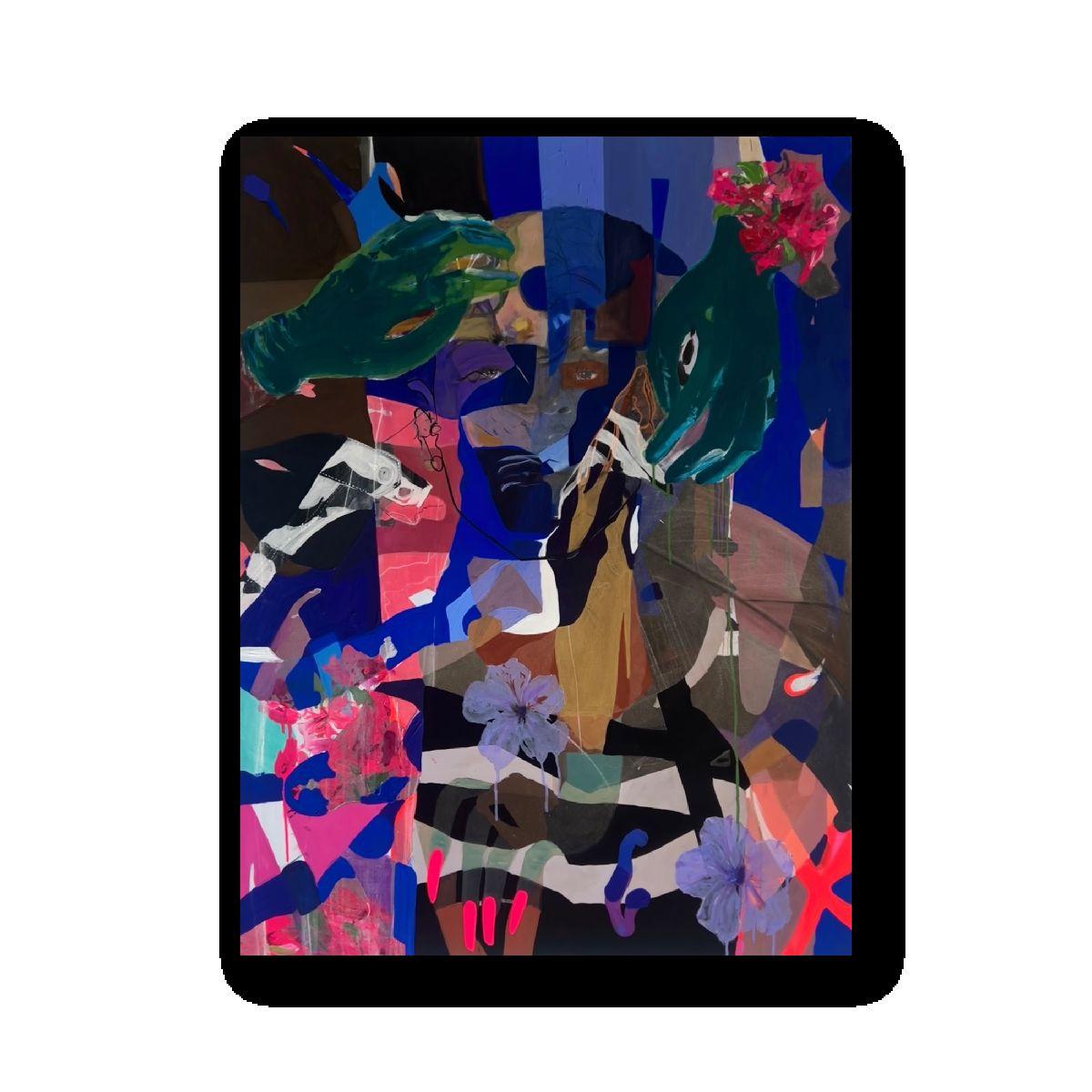 “Thepaintingexplorestheessenceofthe self and the temporality of life. The foreground and background are muddledtoalludetothefleetingnature of life, and the painting serves as a snapshotofthememorieswehaveofthe peoplewehavelost.”