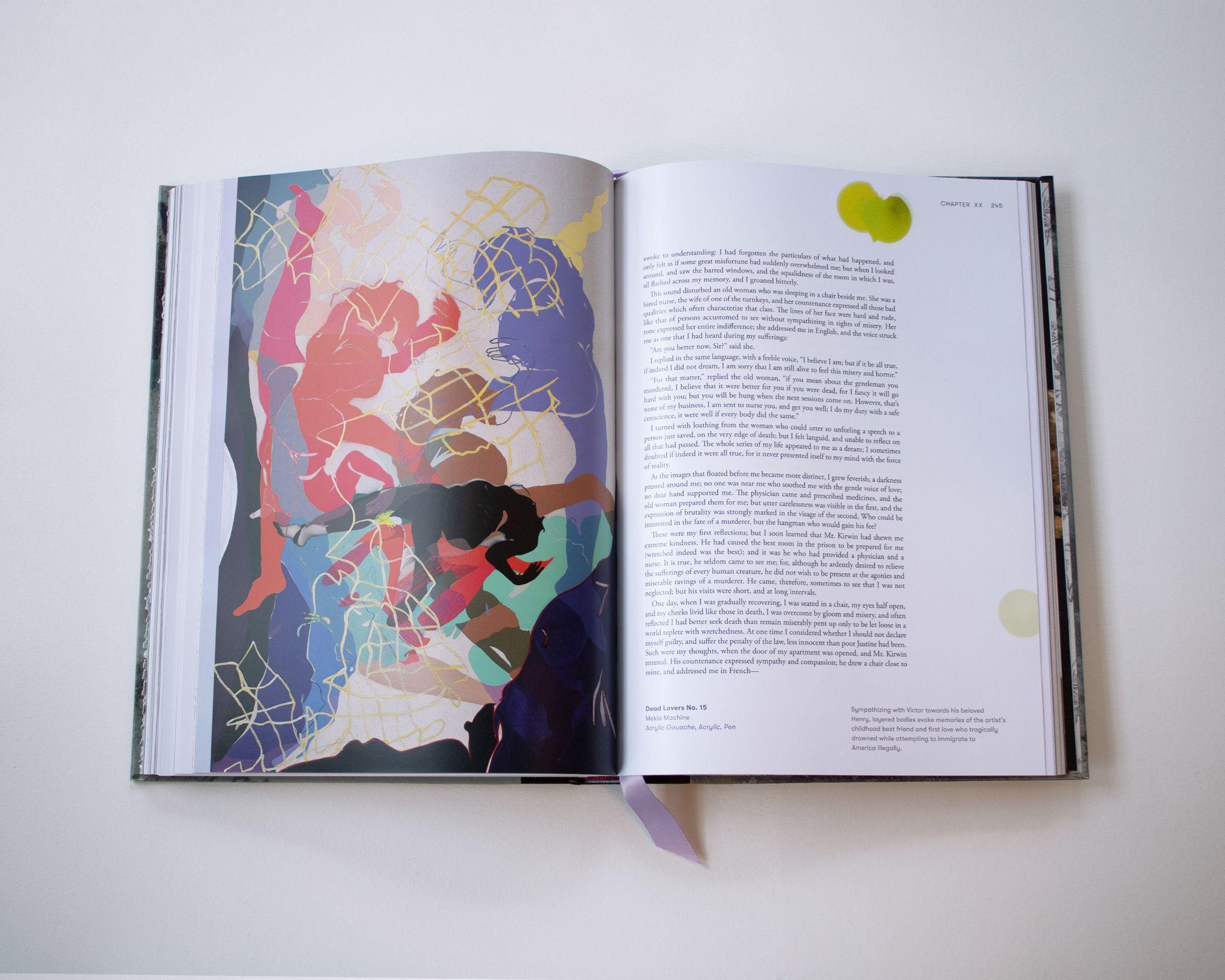 The Frankenstein Art Novel Collection (2023) features 66 bespoke artworks representing more than a dozen mediums created in response to Frankenstein (1818) by Mary Shelley. This body of work offers arresting, intuitive, and romantic expressions of life and death with strong roots in both historical processes and revered legacies. Concurrently, the collection pushes the needle by harnessing revolutionary technologies such as Artificial Intelligence (AI) and materializing contemporary perspectives on autonomy and identity. Grappling with the monsters of today, each Artist looked inward and outward to compose works which reflect our present-day anxieties yet also echo apprehensions from the Romantic era. The objective of such work is to gather the shared concerns of today and begin to unravel them as a collective through questioning and intensive reflection. If we do not break the glass, we will not see all of the beautiful pieces.
