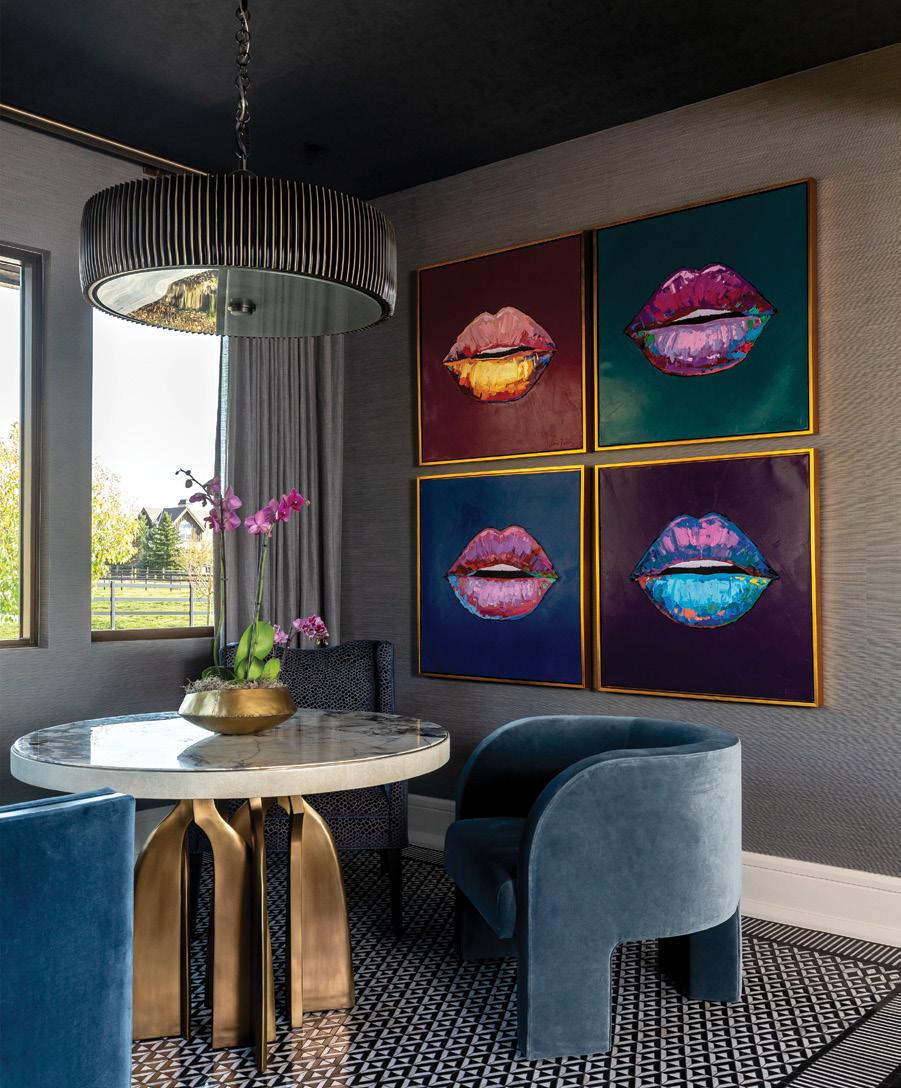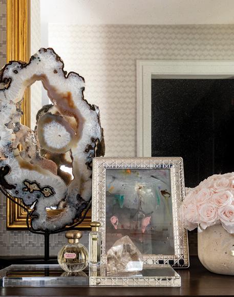 “Every other element in the room plays a supporting role—carefully selected to complement, not compete,” says Chipman. “Th e result is a space that feels both wildly luxurious and deeply grounded, anchored by a material that speaks for itself.”