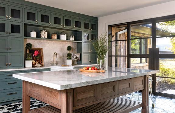 LEFT: In the butler’s pantry, double-dutch glass-and-steel doors welcome fresh air and the occasional visit from Whit, the family’s snack-loving gypsy horse. On the floor, an Inara Cavalier marble mosaic invites a touch of playfulness into the primarily functional space.