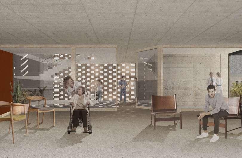 Ce projet se base sur des concepts de paysage thérapeutique, afin de faire bénéficier ses employés et ses patients d’un environnement sain, malgré son contexte urbain dense.