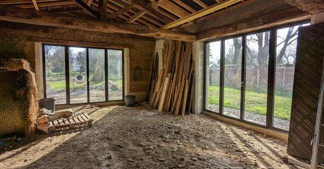 Conception et rénovation d’anciennes écuries avec apprentissage construction en terre, maçonnerie, drainage terrain, travaux second-oeuvre.