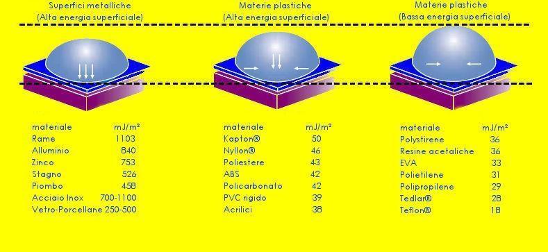 E’ importane notare che materiali ad alta energia superficiale posseggono anche elevata rapidità di ossidazione, bassa resistenza alla corrosione: