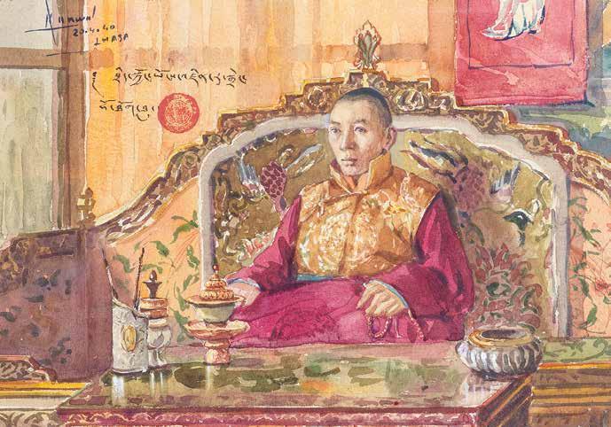 The pivotal moment in Gould’s career, for which he was knighted, was his attendance at the enthronement ceremonies of the 14th Dalai Lama in Lhasa in early 1940. Commissioning the artist Kanwal Krishna to record the ceremonies and dignitaries was a stroke of genius. For while Sir Basil Gould and Kanwal Krishna operated in different spheres; diplomacy and art respectively, their paths converged through their deep engagements with Tibet.