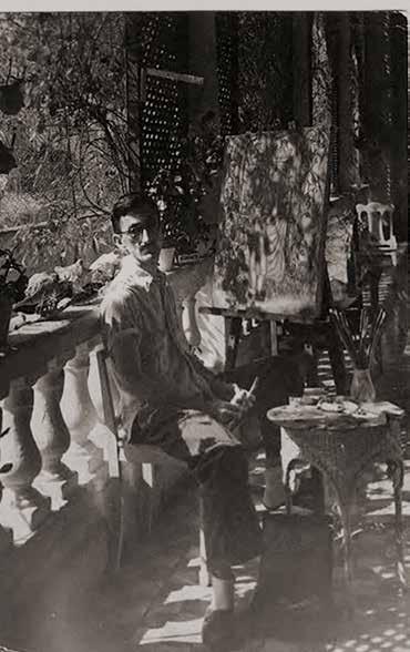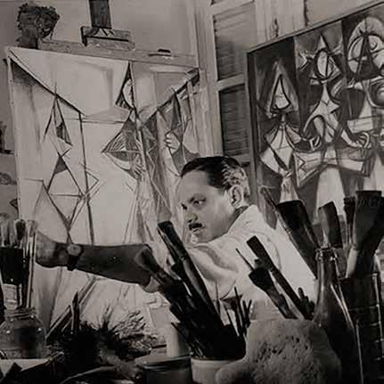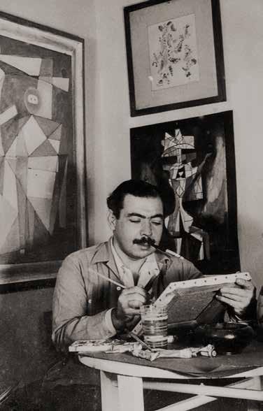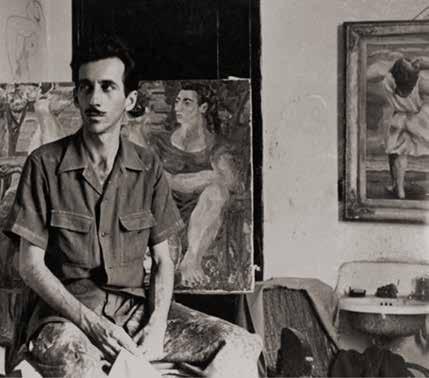 Cundo Bermúdez in his studio, Havana, 1943. Seen in front of Romeo y Julieta (1943)